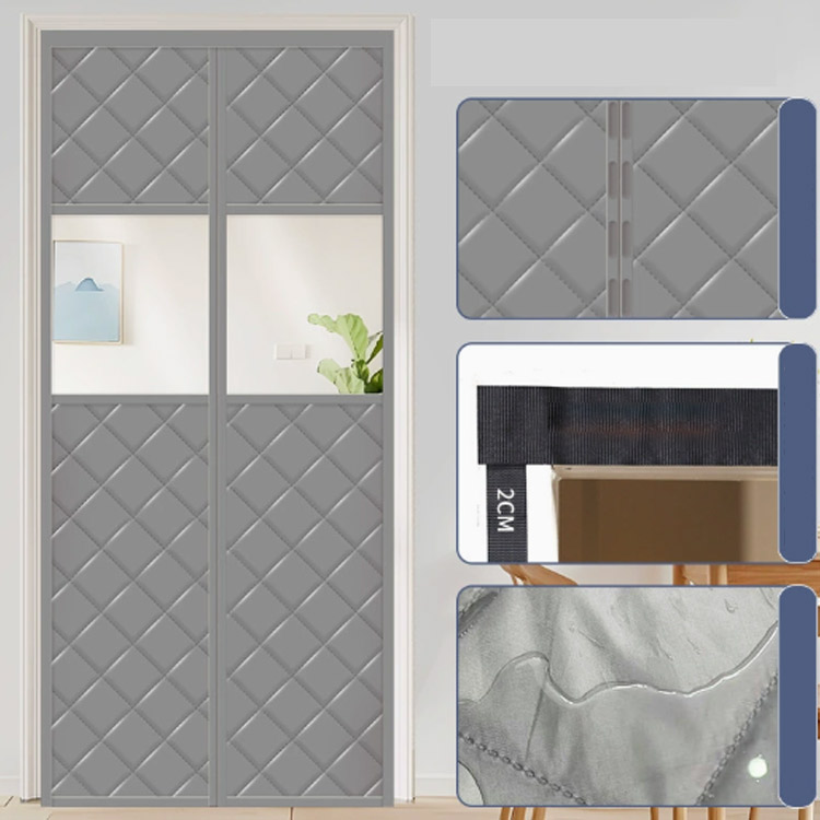 コットンカーテン マグネット式 保温 のれん 間仕切りカーテン 中綿入り 防寒 窓付き 防風 防水 キルティング 玄関 ドア用 断熱 暖簾 冷暖房効率UP マジックテープ カーテン