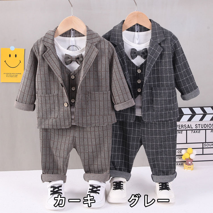 3点セット 子供 セットアップ フォーマル 男の子 スーツ キッズ 長袖 シャツ 上下セット 洋服 七五三 スーツセット 子供服 赤ちゃん ベビー おしゃれ 結婚式 入学式 入園式 子ども
