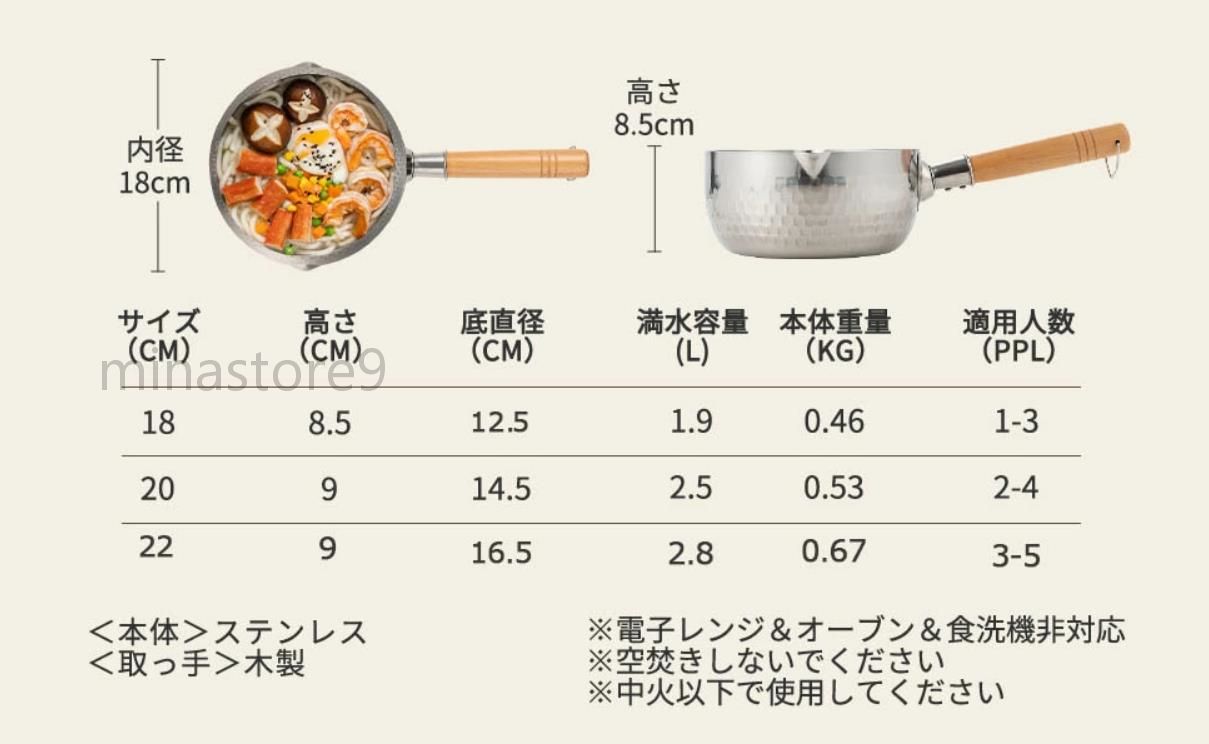 雪平鍋 3サイズから選べ おしゃれ ス 18cm 20cm 22cm 蓋なし 蓋付き
