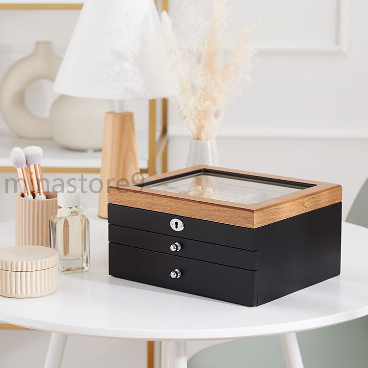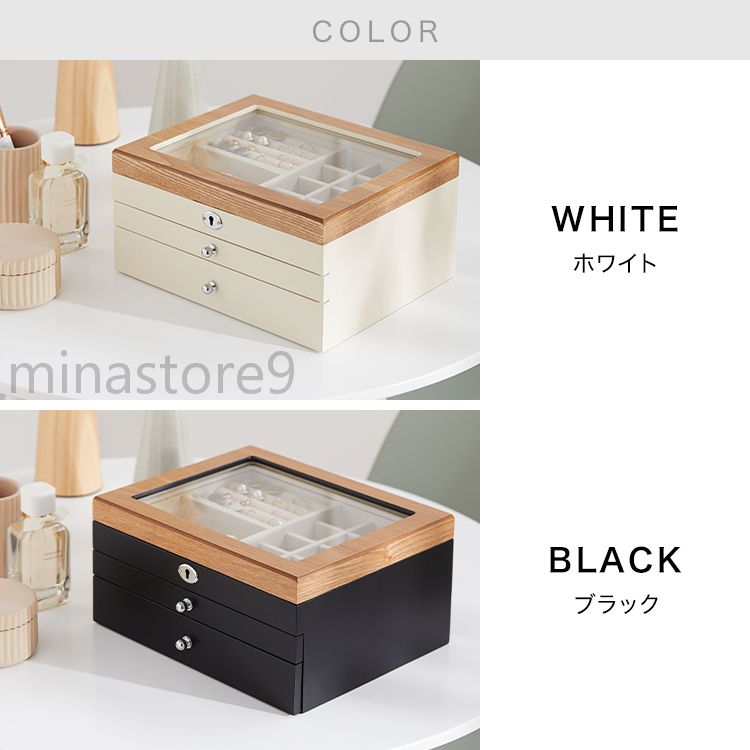 天然木製 引き出し式 3段 収納ボック ジュエリー アクセサリー 早い者勝ち ホワイト ブラック