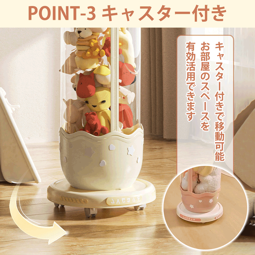 ぬいぐるみ 収納 ケース 円柱 筒 筒 ピンク ベージュ S(112cm) M(142cm)