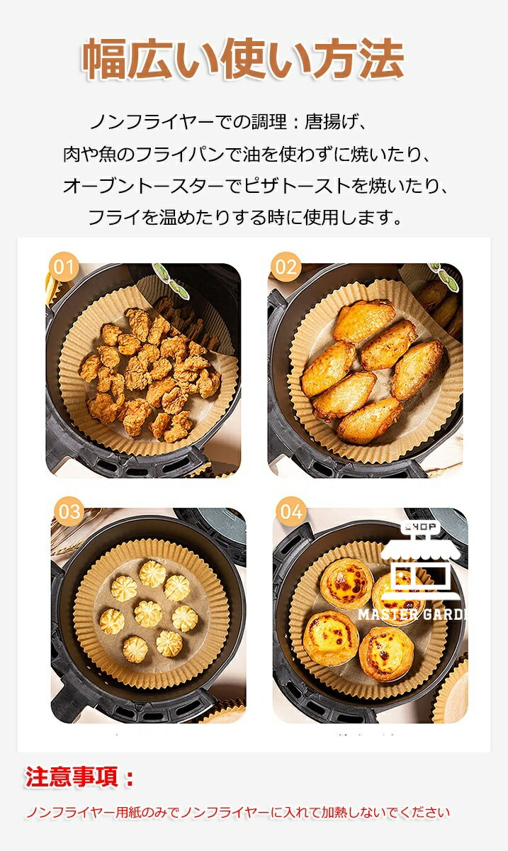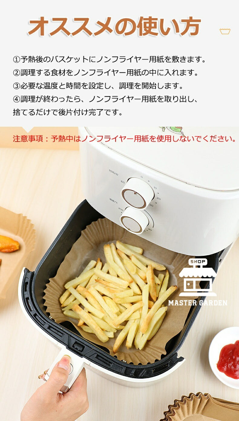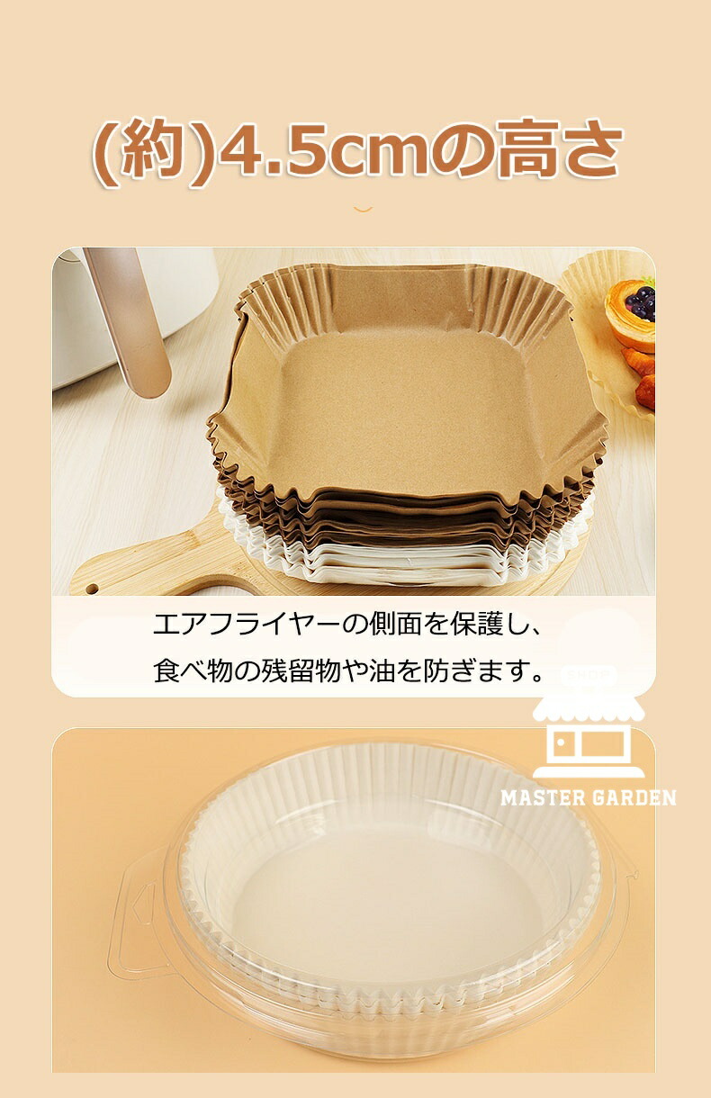 エアフライヤー用紙 ノンフライヤー 3 食器 カトラリー グラス 使い捨て食器 使い捨て皿 器 新登場! 茶色(四角形100枚) ホワイト(四角形100枚) 茶色(丸型100枚) ホワイト(丸型100枚) 16cm*4.5cm 20cm*4.5cm