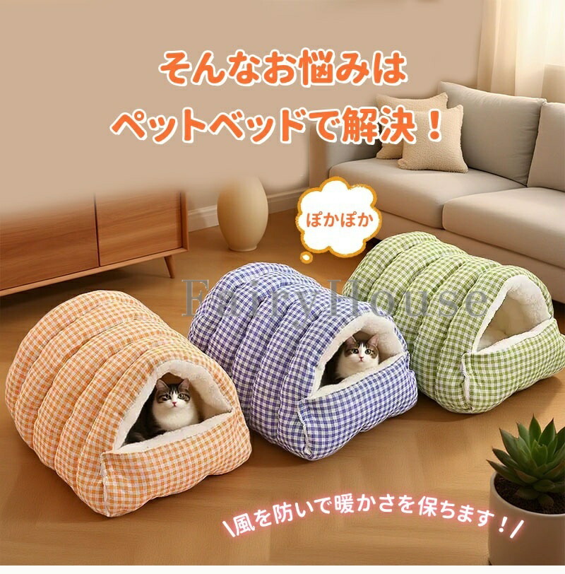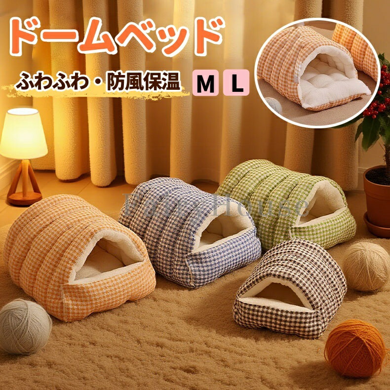 トンネル型 ドームベッド 猫犬兼用 ド 猫用品 ベッド マット 寝具 ベッド 通販 ブルー グリーン オレンジ グレー M:約48*30*20cm L:約65*40*28cm
