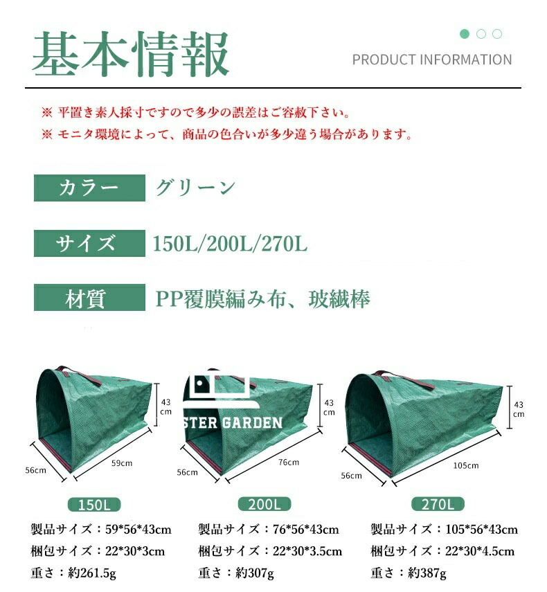ガーデンバッグ ちりとり 集草バッグ 150Lガーデンバッグ(1点) 150Lガーデンバッグ(2点) 150L(2点)+作業用手袋(1組) 200Lガーデンバッグ(1点) 200Lガーデンバッグ(2点) 200L(2点)+作業用手袋(1組) 270Lガーデンバッグ(1点) 270Lガーデンバッグ(2点) 270L(2点)+作業用手袋(1組)