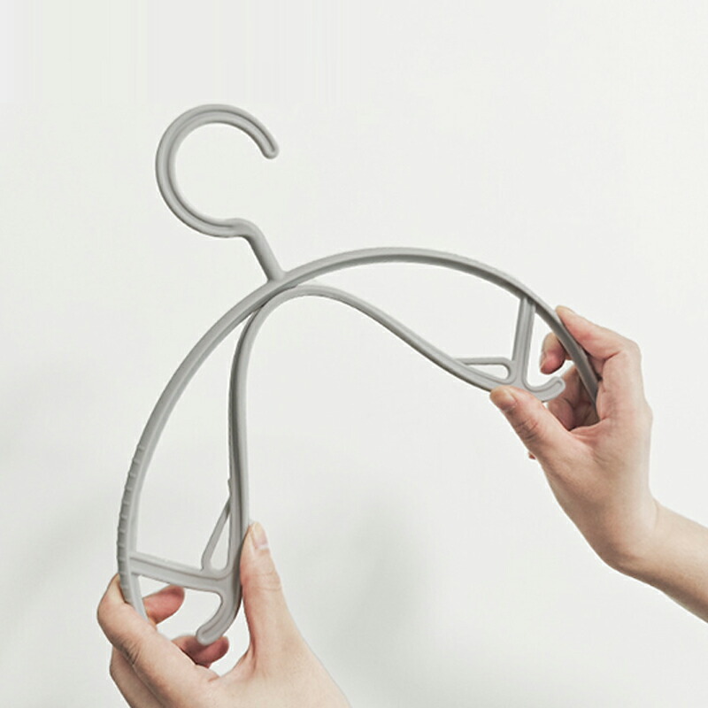 一般的なハンガーとは異なる弓型状なので、洋服の肩部分のシルエットを崩さず、美しい状態でしっかりとキープ。