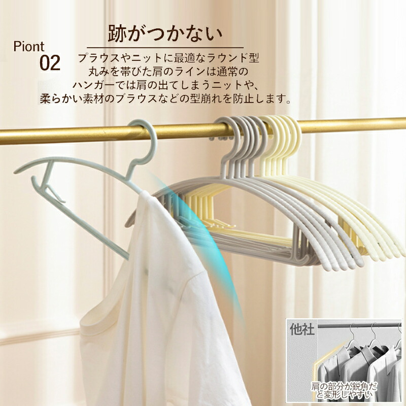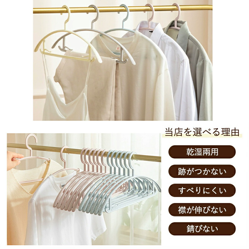 ハンガー 肩 跡つかない かたくずれ防止 20本~70本セット 多機能 衣類ハンガー プラスチック 型崩れ防止 肩出ない 洗濯ハンガー 跡が付かないハンガー 滑 乾湿両用