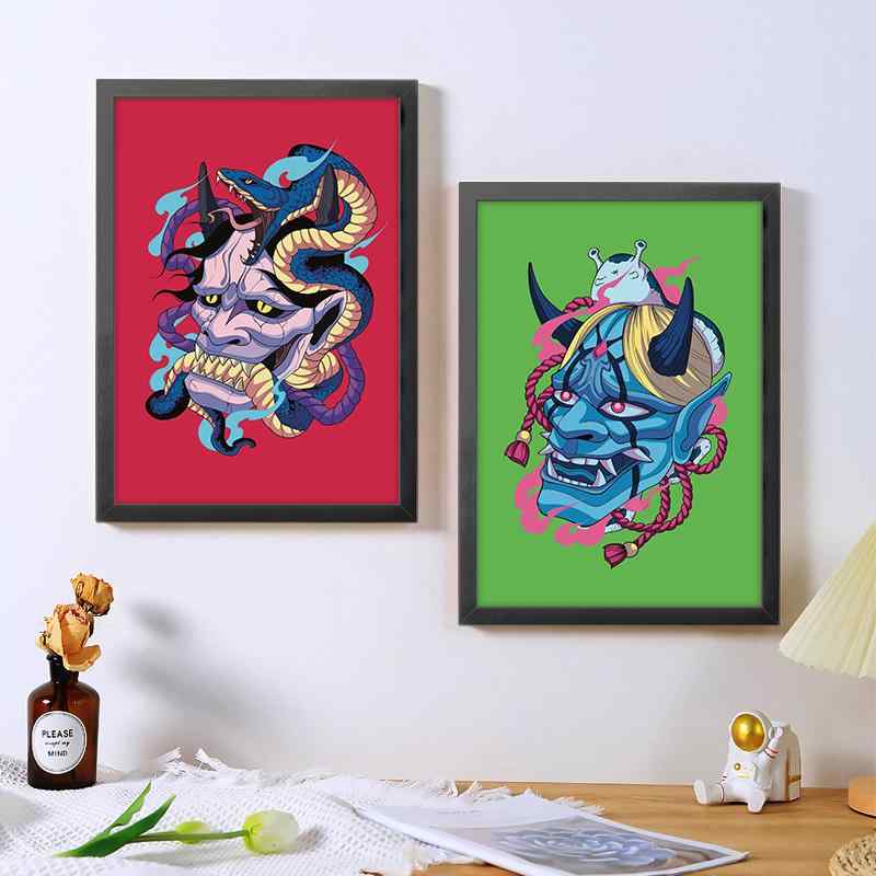 ポスター フォトフレーム 和風 絵 インテリア カラー A4 A3 タトゥー デザイン画 アート 絵画 装飾 般若 鬼瓦 和 刺青 ショップ 店内 飾り リビング 玄関 廊下 壁掛け 部屋