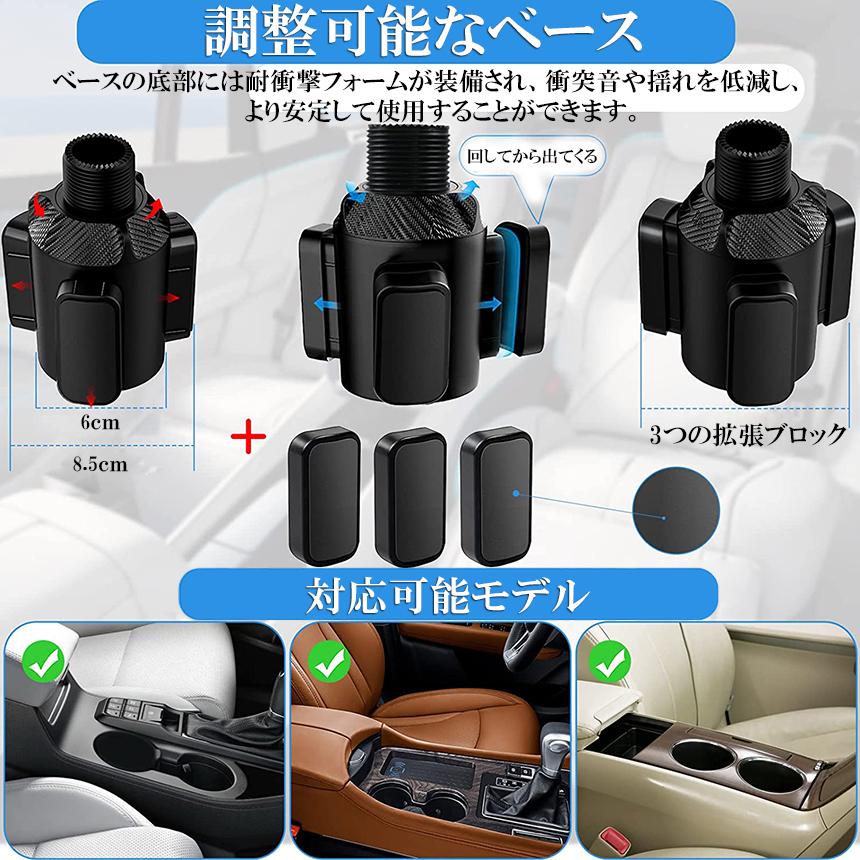 ドリンクホルダー部分に本体を差し込み、矢印方向に回すだけで簡単に設置完了!固定部分は滑り止め加工が施されており、がっちりと固定できます。未使用時は取り外しアーム部分を取り外すことでコンパクトに収納いただけます。