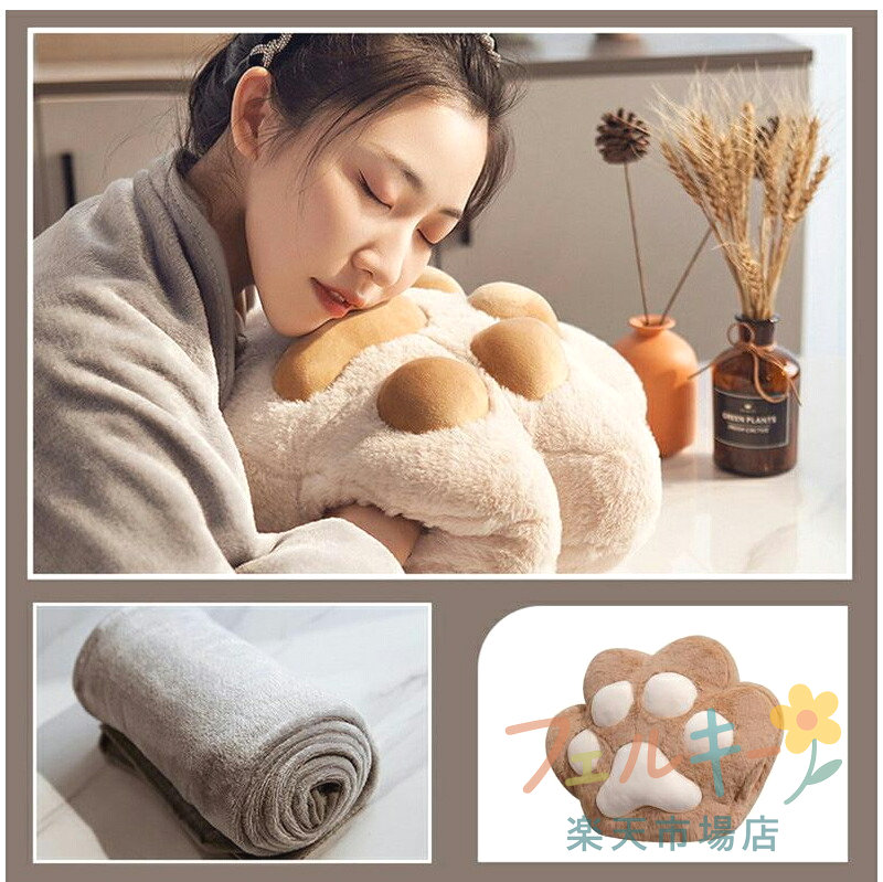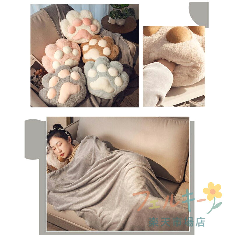 クッション ブランケット 膝掛 毛布 猫 肉球 大きい カワイイ ひざ掛け 抱き枕 あったか 昼寝 暖かい リラックス 防寒