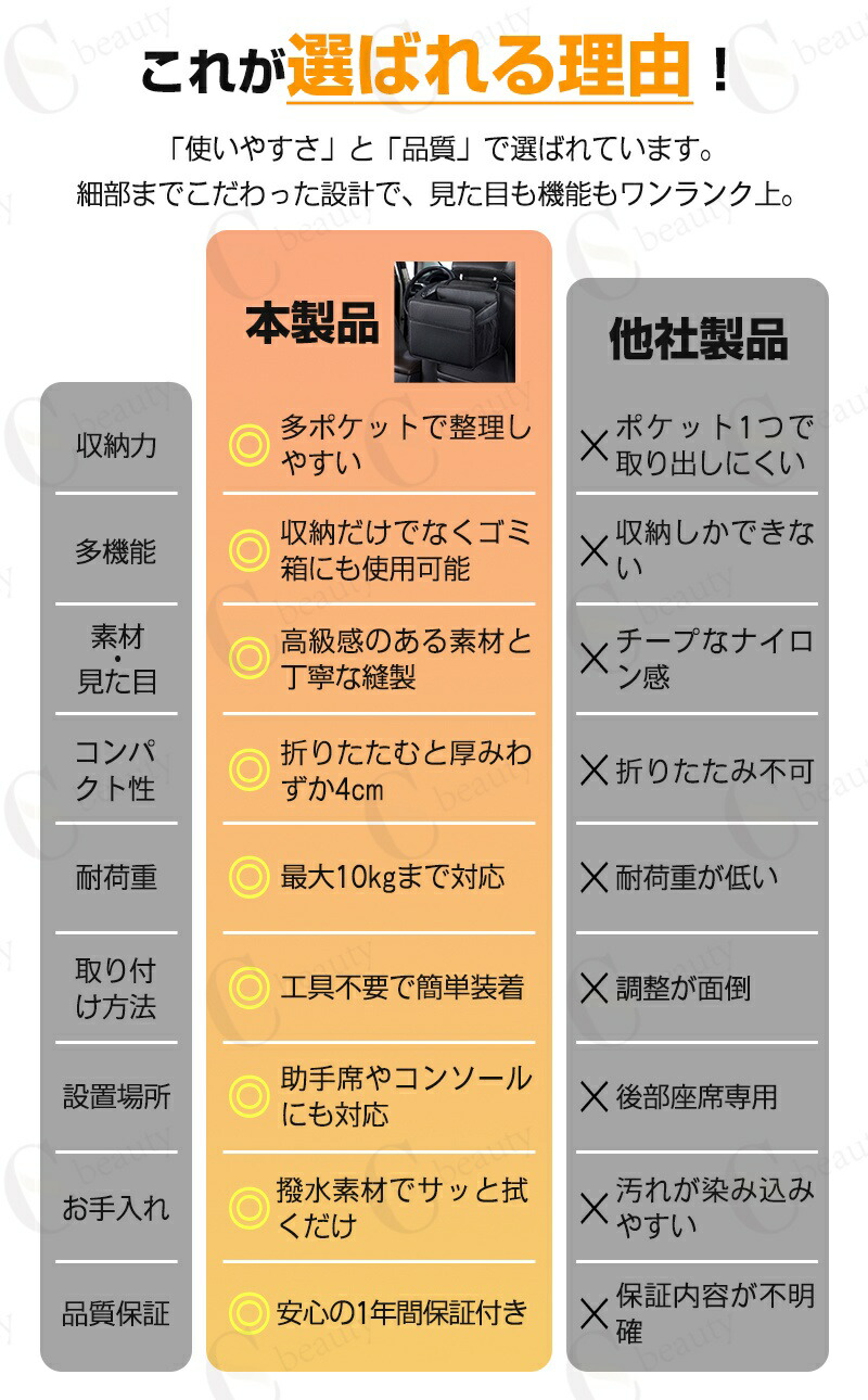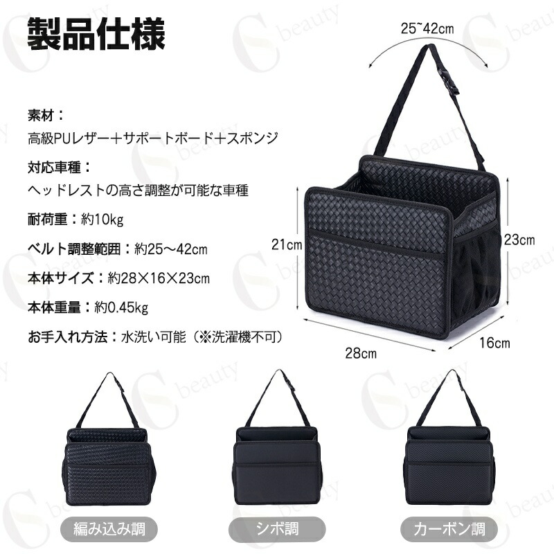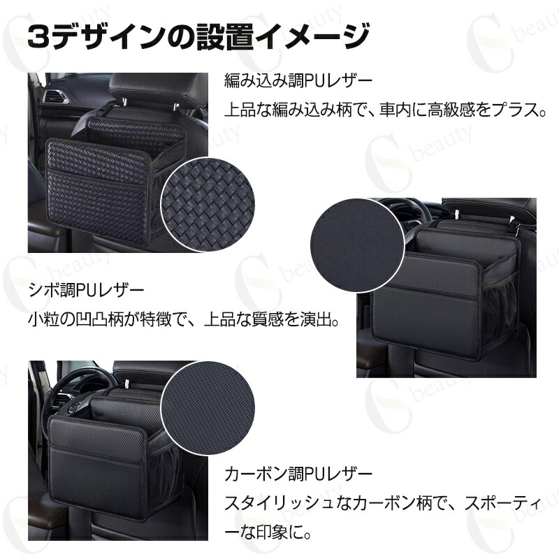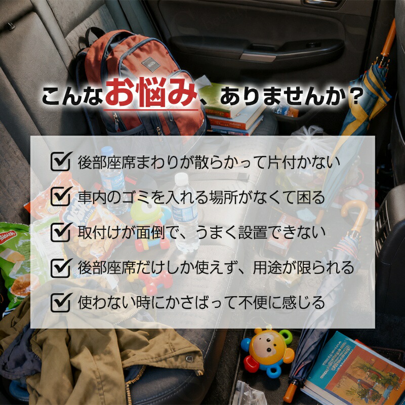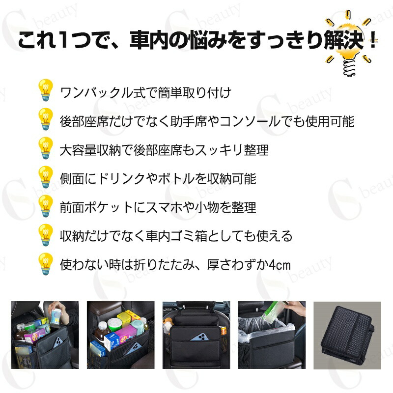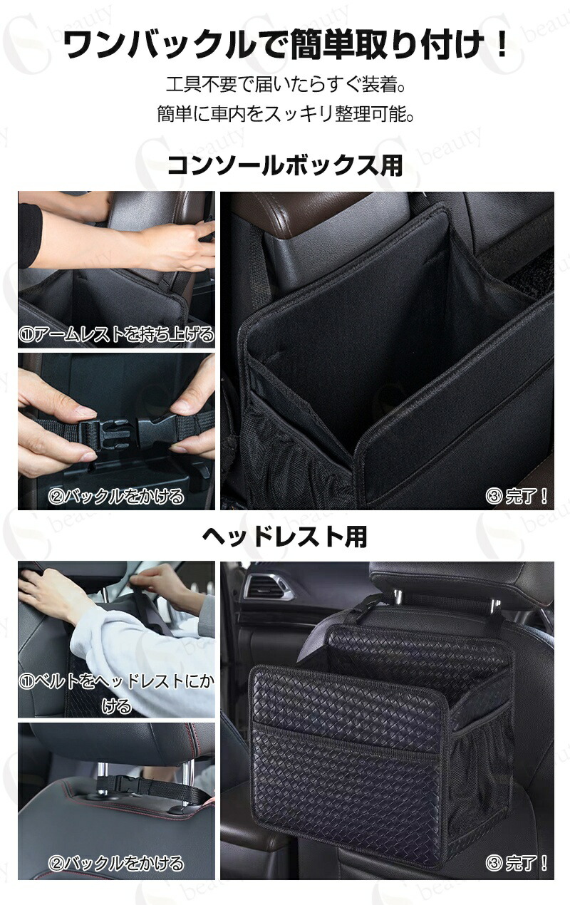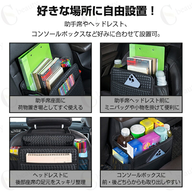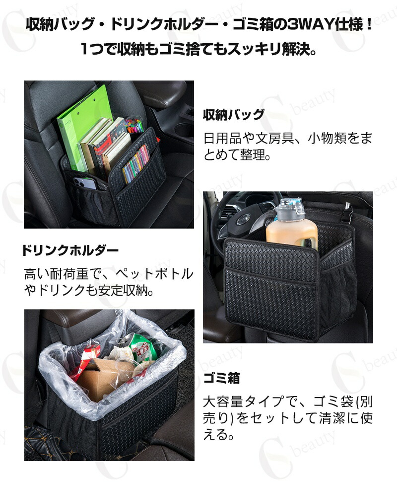 収納バッグ・ドリンクホルダー・車内ゴミ箱として使用可能。