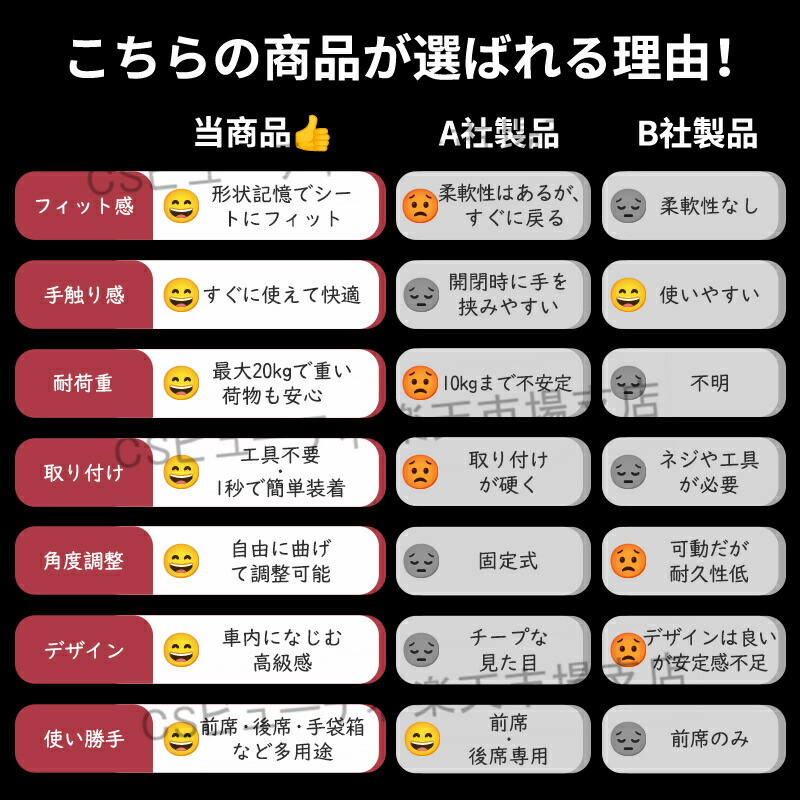 荷物を便利に掛けられ、取り出しやすく、車内をすっきり整理