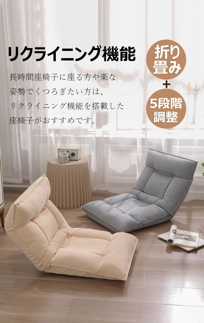 座椅子 コンパクト 折りたたみ 腰痛 イエロー グリーン ピンク ベージュ ライトグレー ダークグレー