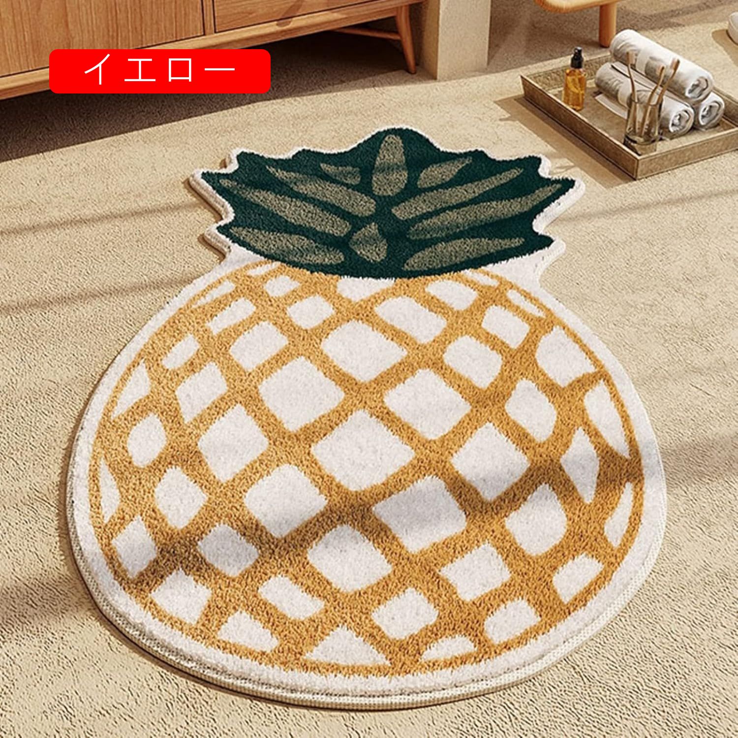 異型ラグマット カーペット パイナップル 洗える 折り畳み お手入れ簡単 柔らかい 吸水 防音 北欧 かわいい インテリア ベッドルーム 玄関 子供 ケガ防止 滑り止め付 ベッドサイドマット