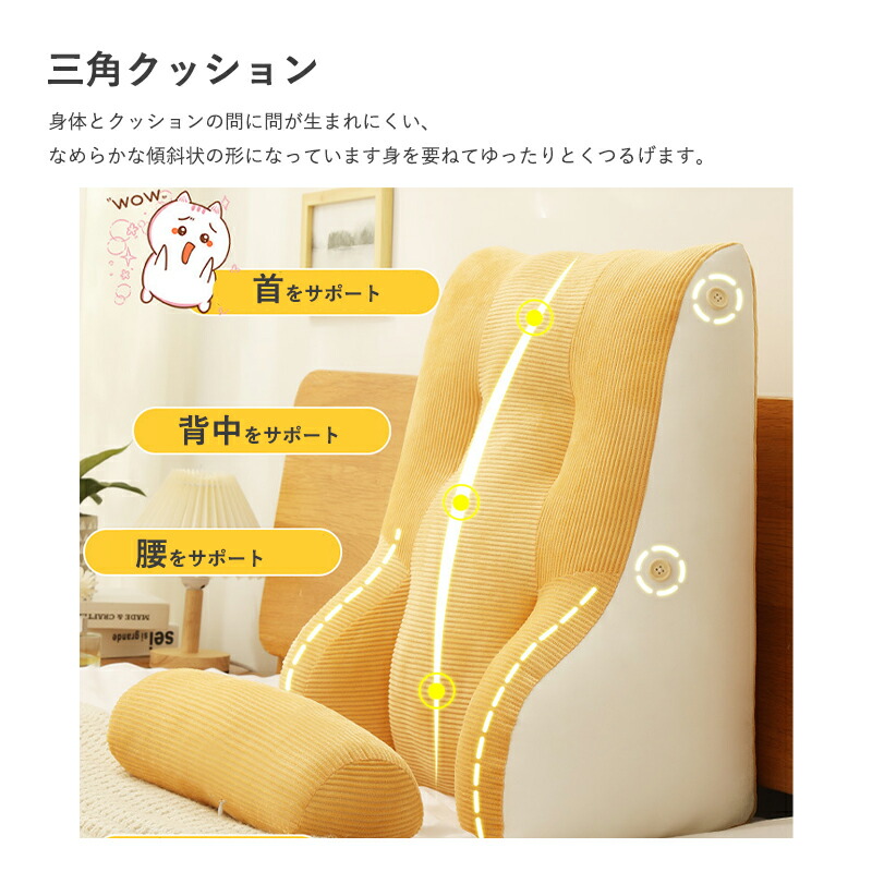 背もたれ クッション 三角クッション ピンク グレー グリーン イエロー
