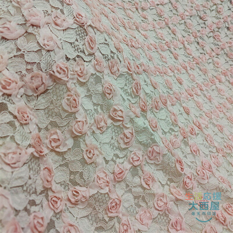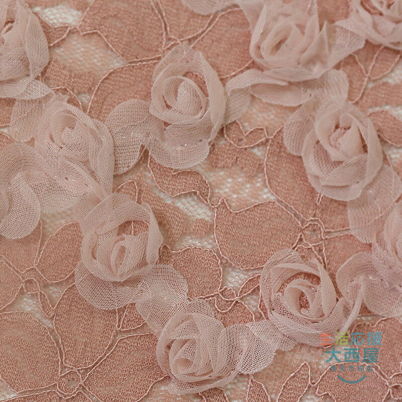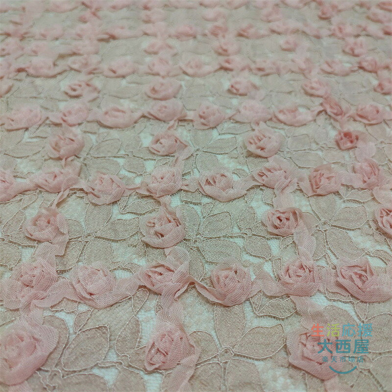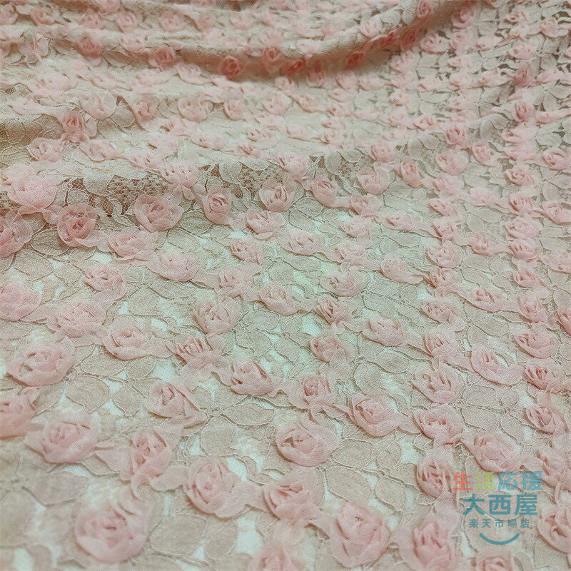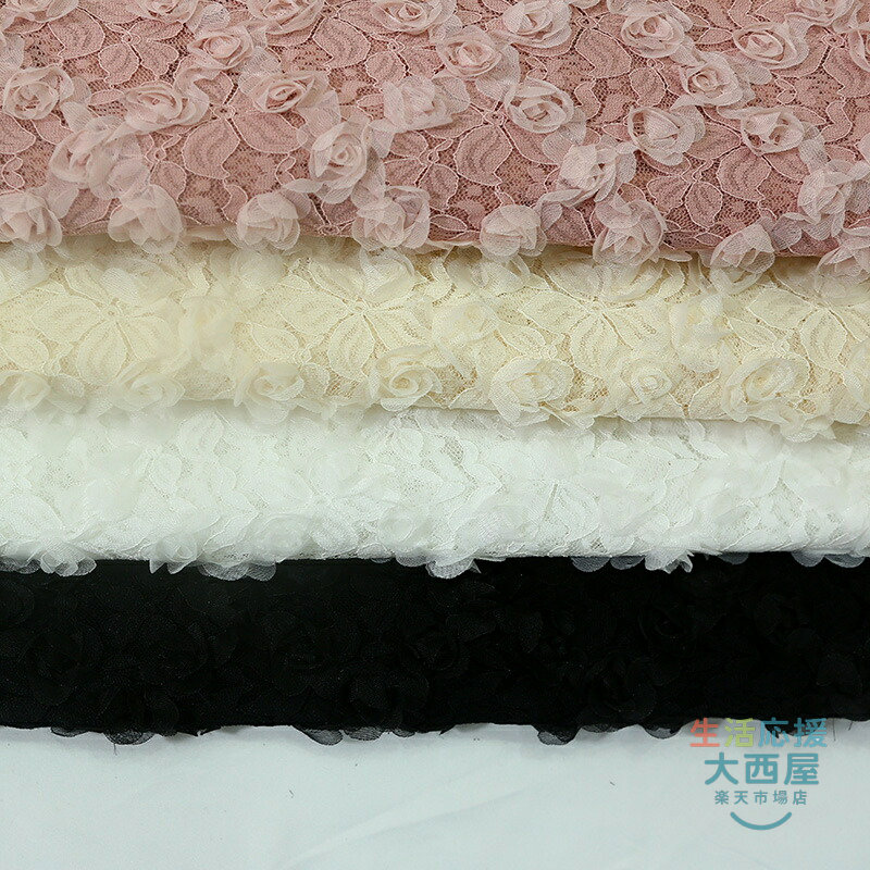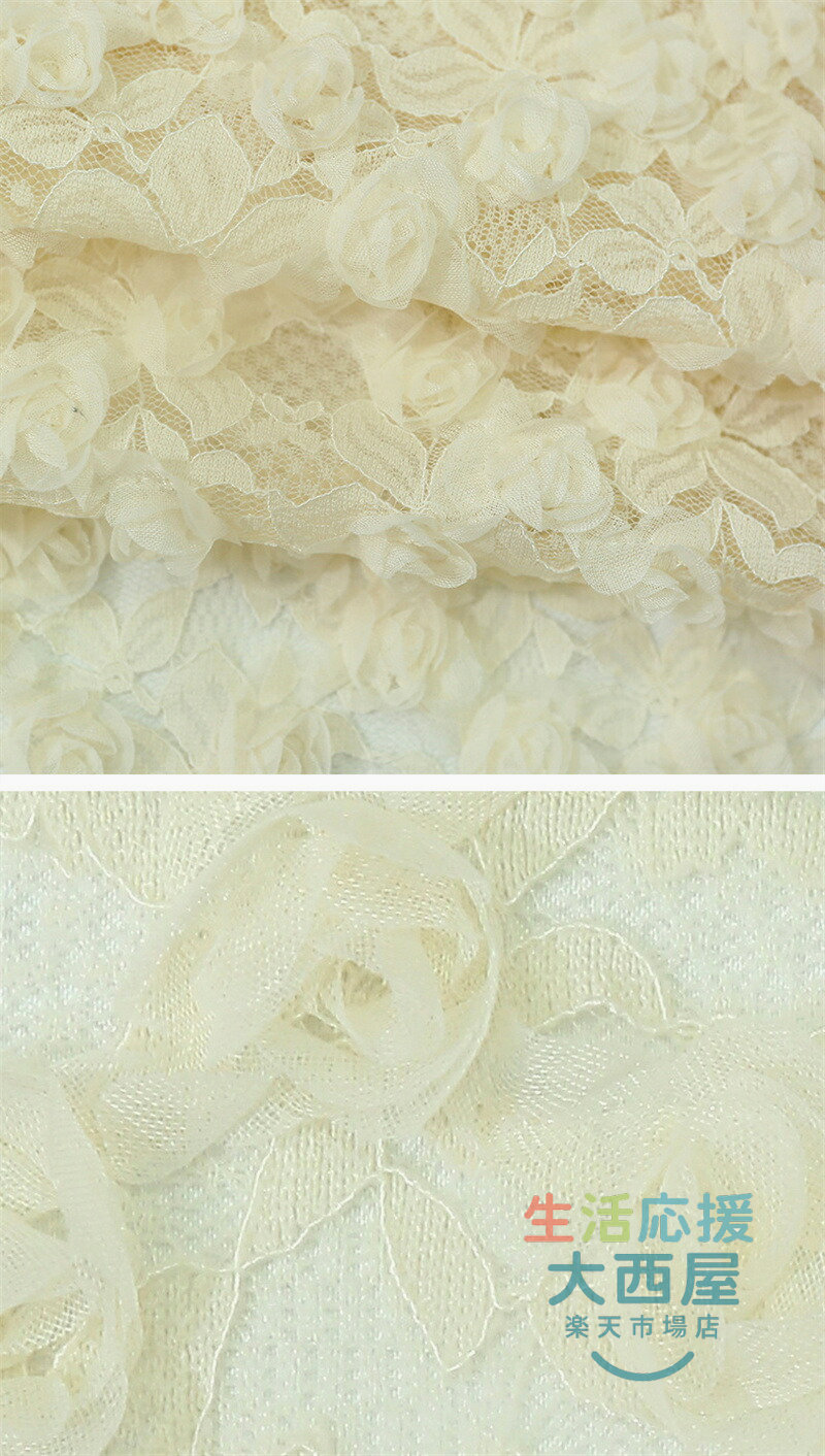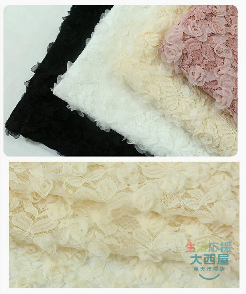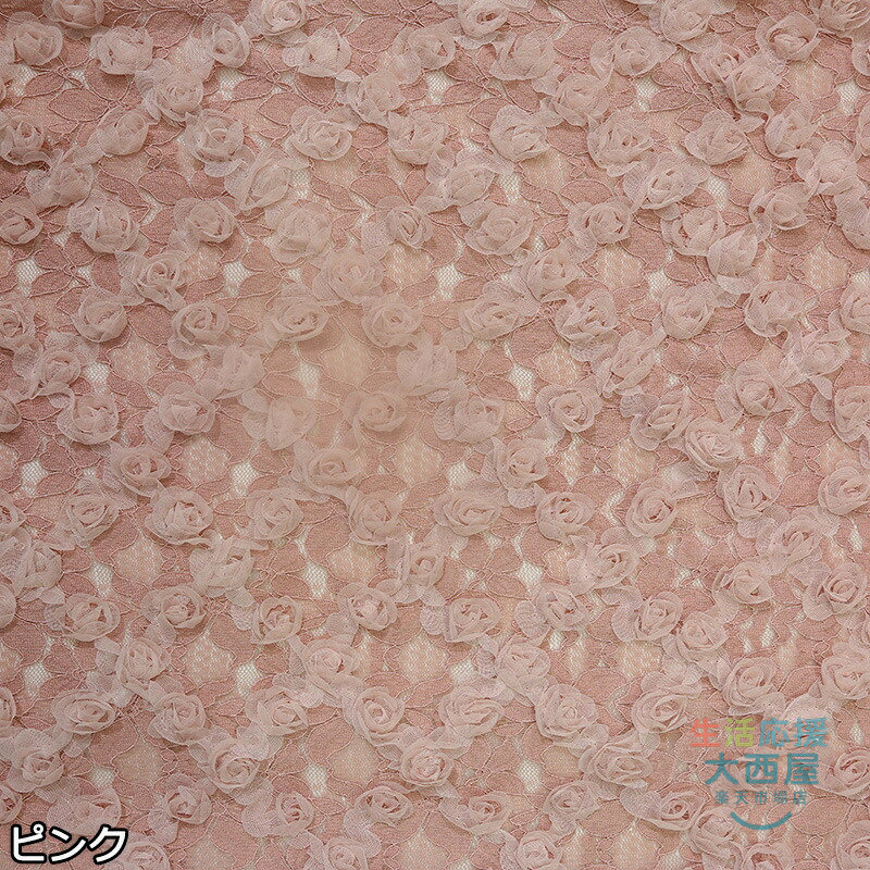 125cm幅 85cm単位 レース生地 立体バラ柄 刺繍 花柄 透明 薄手 メッシュ ピンク 杏色 黒 布地 布 生地 白