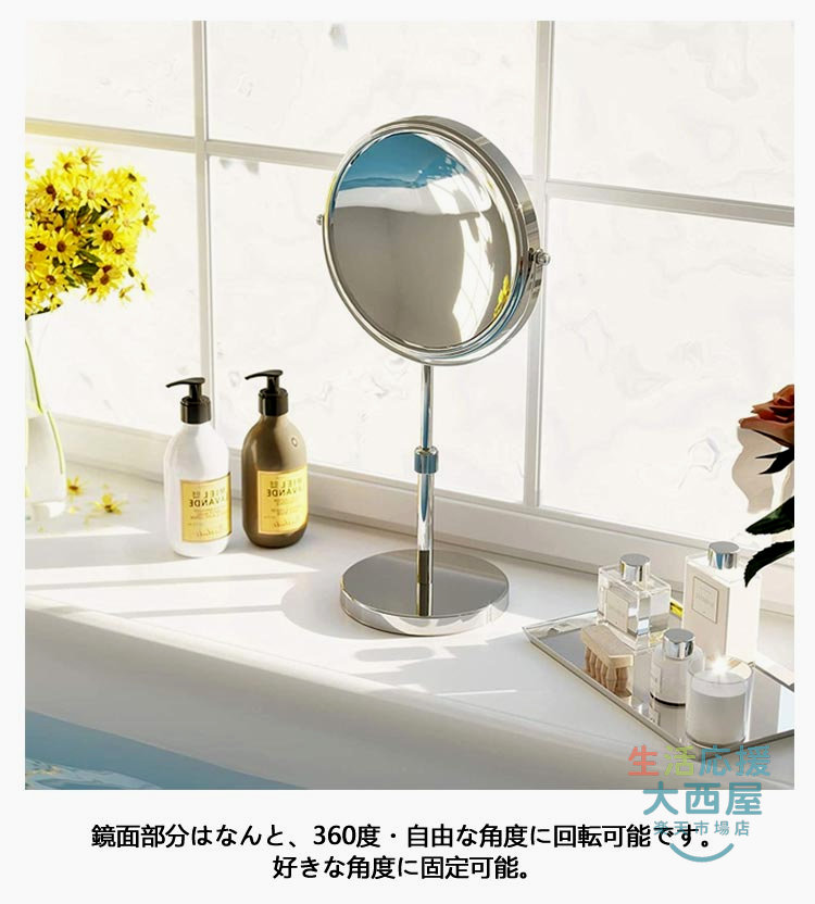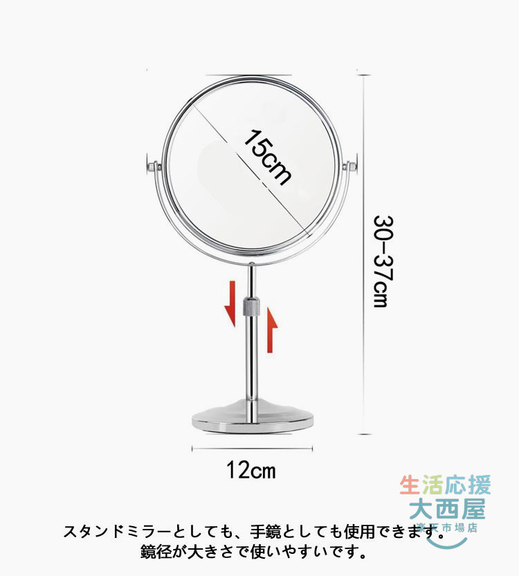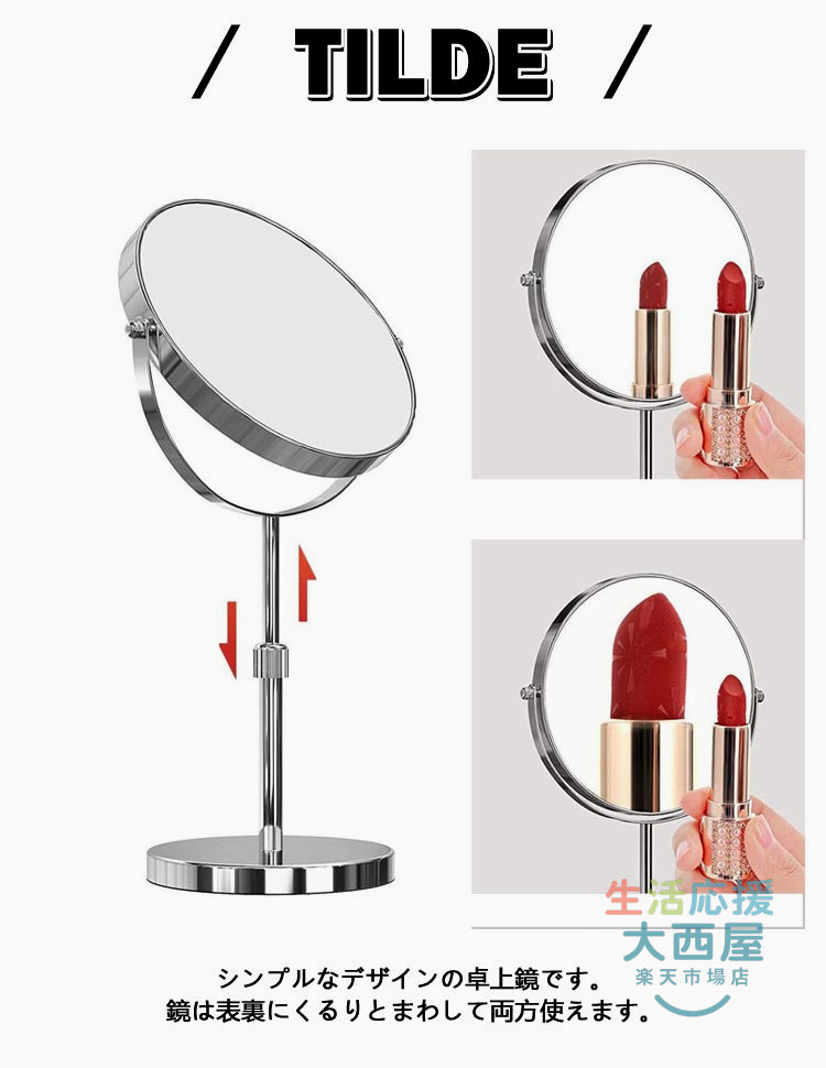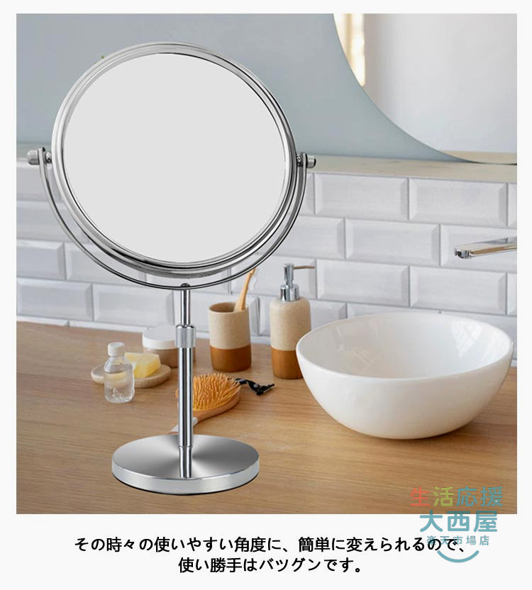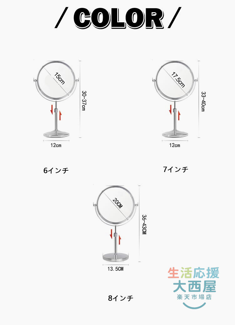 メイク用 スタンドミラー 卓上ミラー 両面 拡大鏡付き 高さ調節 6インチ 7インチ 3倍 5倍 10倍 8インチ