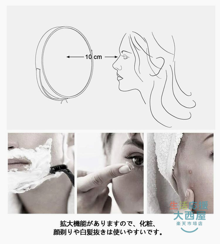 メイク用 スタンドミラー 卓上ミラー 裏面3倍拡大 裏面5倍拡大 裏面10倍拡大 6インチ 7インチ 8インチ