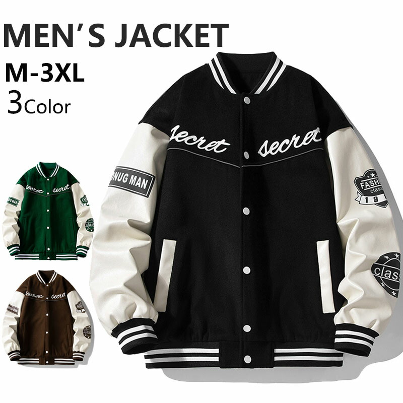 メンズ ワッペン 暖かい 中綿ジャケッ コート ジャケット 新作 ブラック グリーン コーヒー M L XL 2XL 3XL