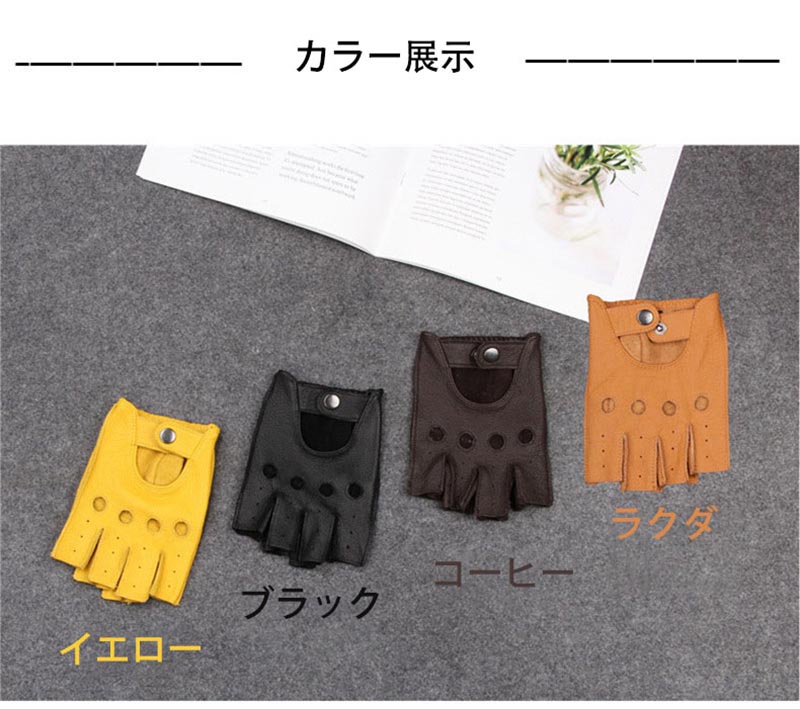 ドライビンググローブ 半指 革 レザー スポーツ アウトドア 早い者勝ち イエロー ブラック コーヒー ラクダ M L XL
