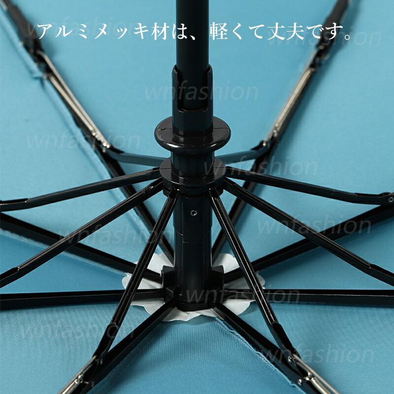 8骨設計: 8本の骨を使用した堅牢な構造により、強風や激しい雨にも耐えることができます。安定した開閉動作で、自動的に広がり、折りたたむことができます。