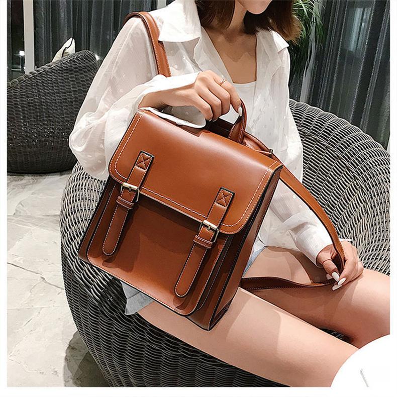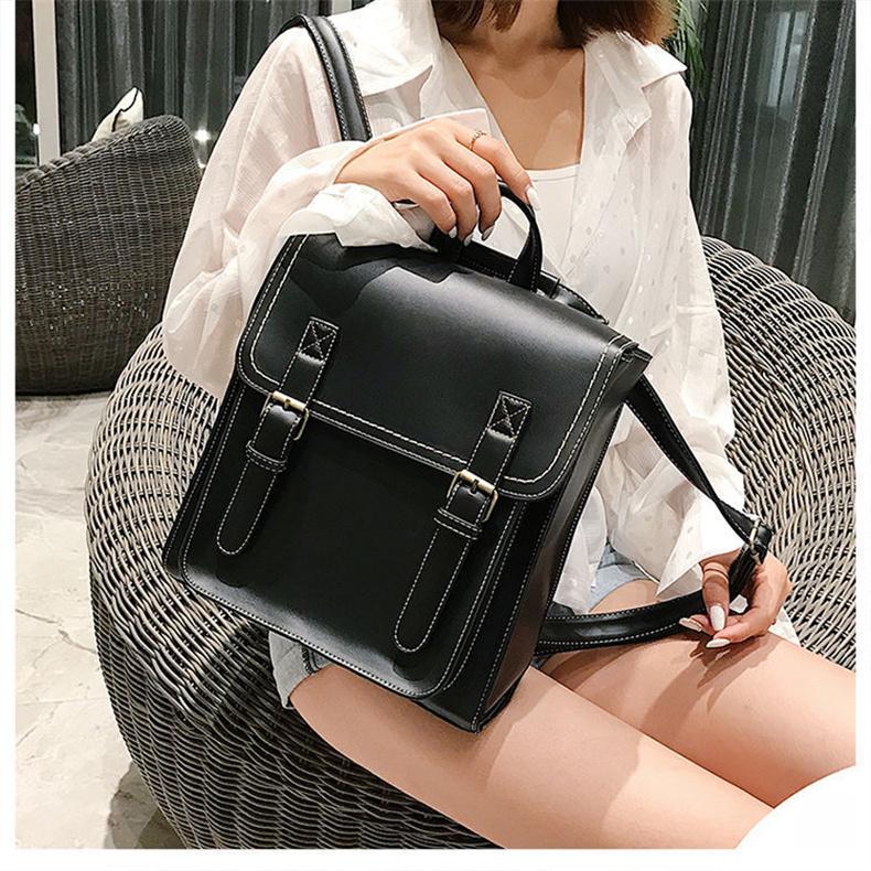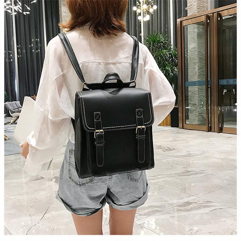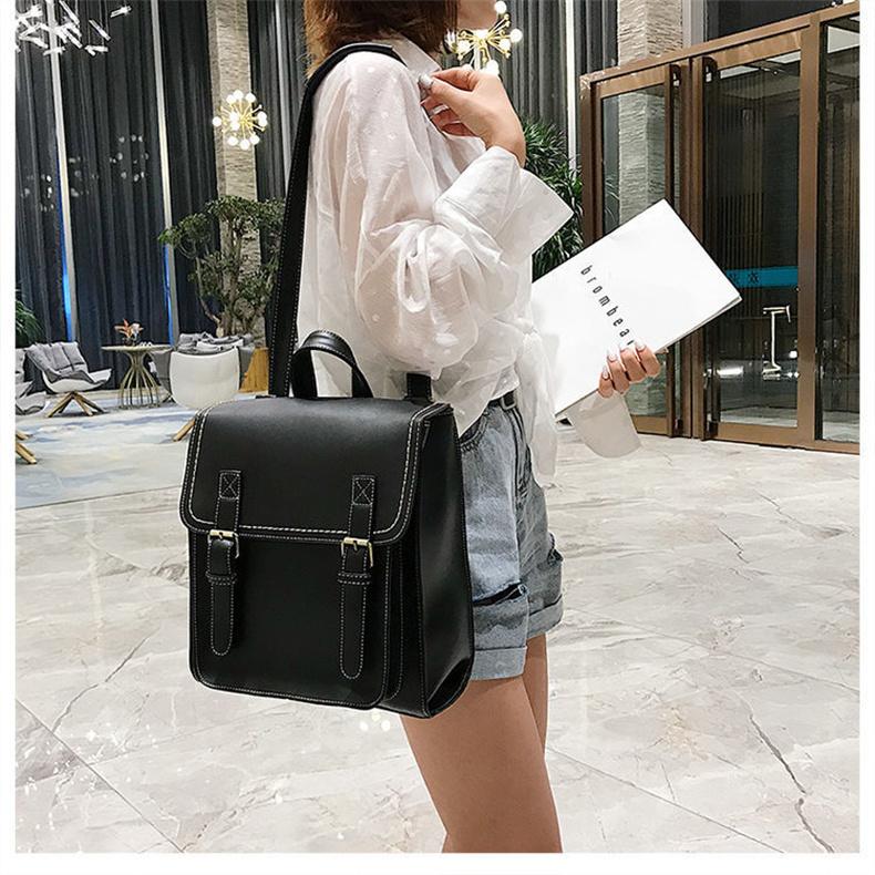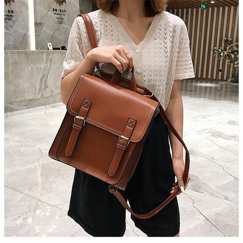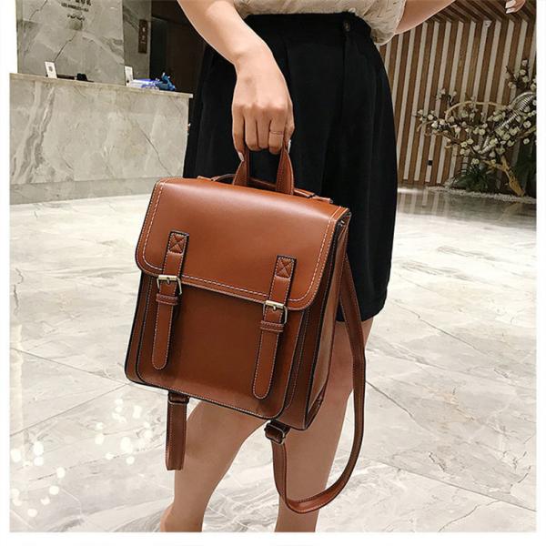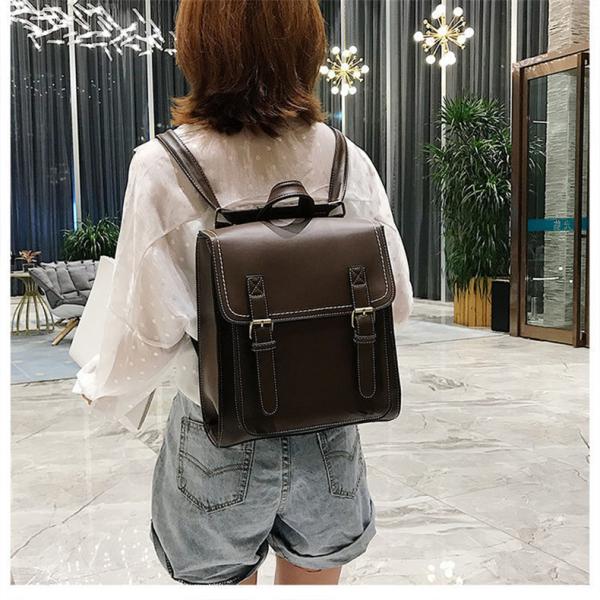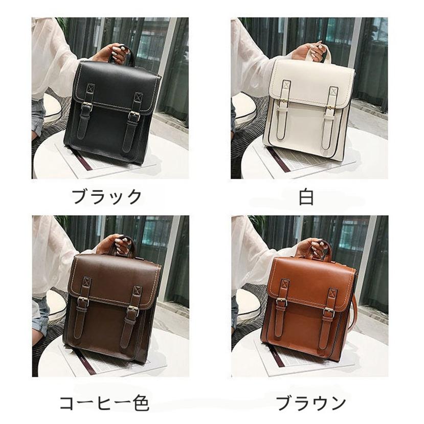 リュック レディース 縦型 A4 スクエア型 ランドセル かわいい バックパック ショルダーバッグ 英国風 レトロ 学生 通学 無地 PUレザー 革 スクールバッグ