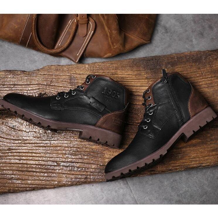 2色 メンズショートブーツ バイクブーツワークブーツ エンジニアブーツ 滑り止め サイドジップ 作業靴