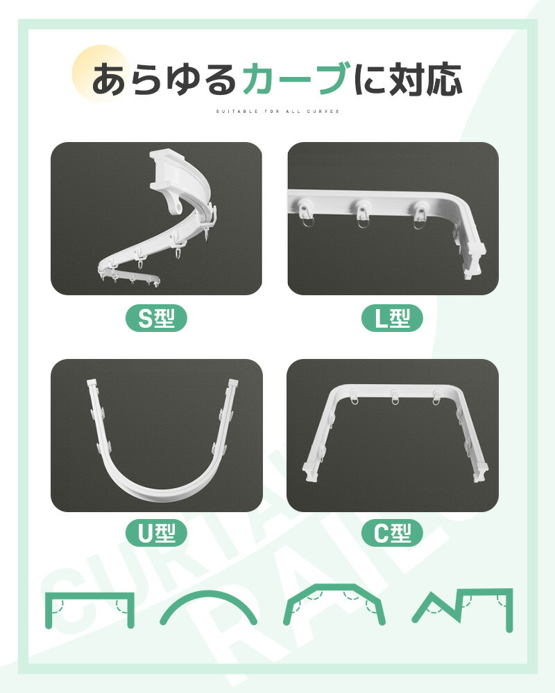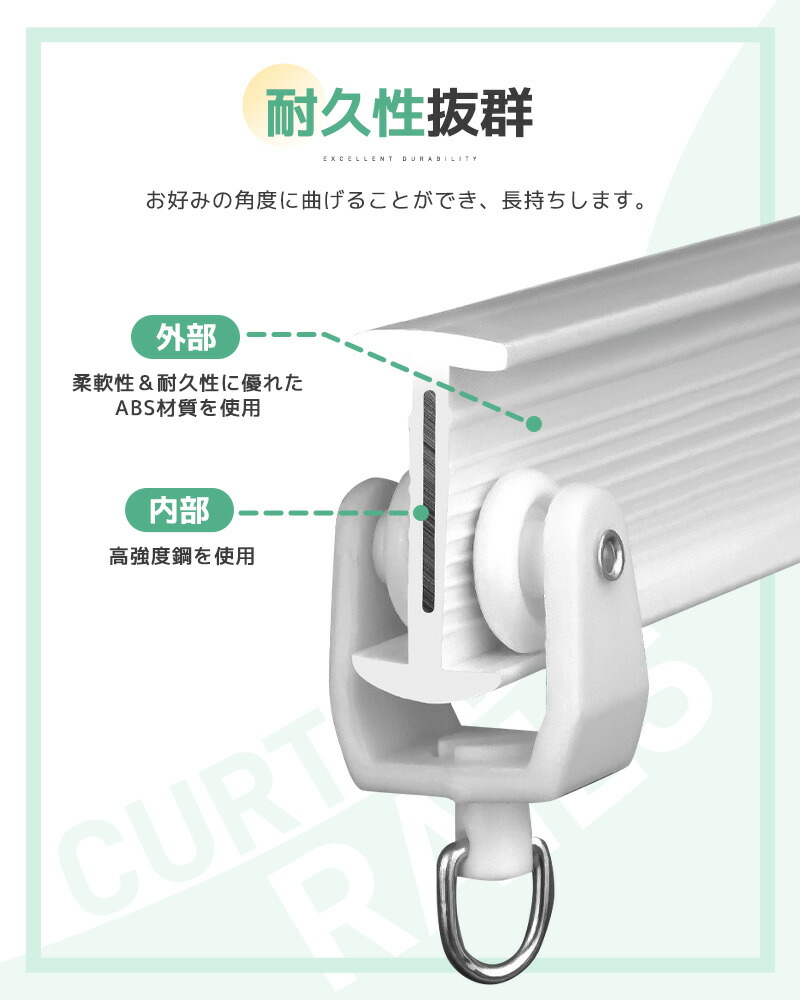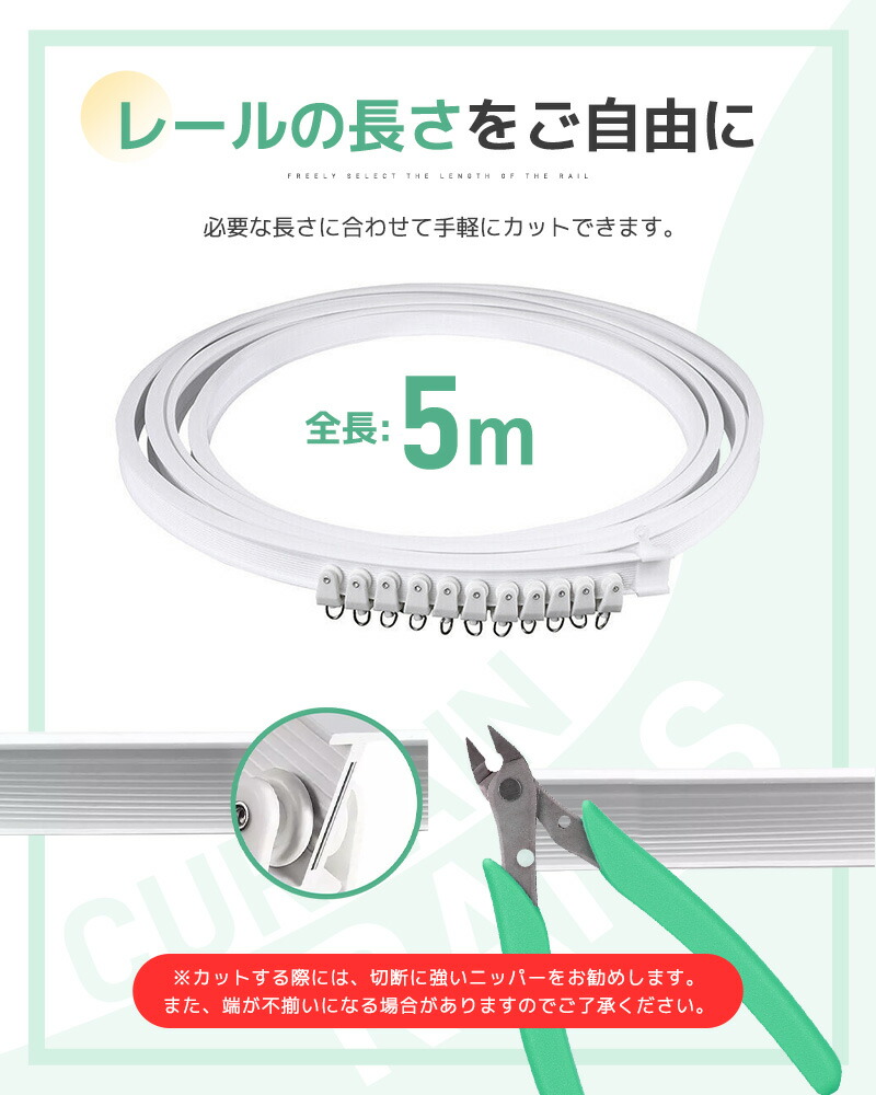 カーテンレール カット可能 1m 2m 5m カット自在 ランナー 頑丈 静音性 耐荷重15kg 間仕切り 開閉簡単 シンプル 曲がるカーテンレール 取付簡単 曲げ可能 正面付け 天井付け 長さ調整