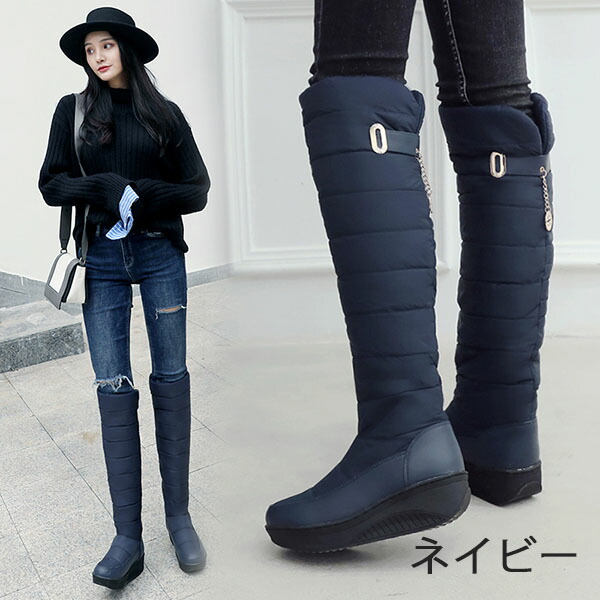 秋冬 防寒 ロングブーツ 中綿 裏ボア 靴 早い者勝ち ブラック ネイビー 22.5 23.0 23.5 24.0 24.5 25.0 25.5 26.0 26.5 27.0