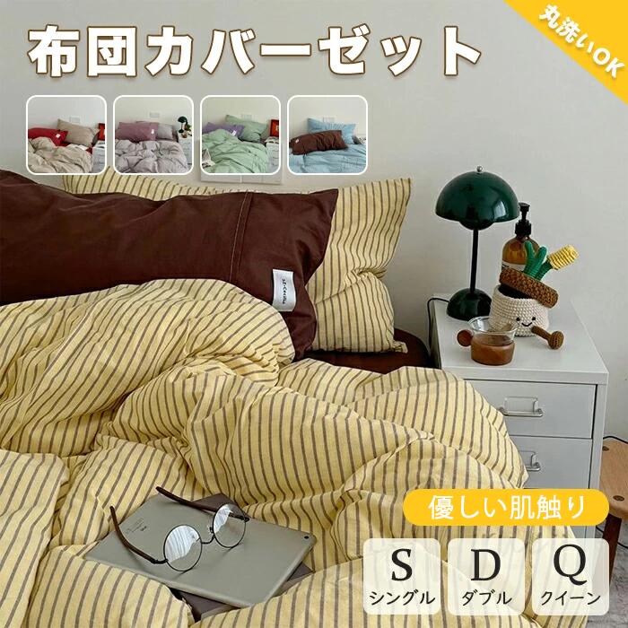 布団カバー 北欧 おしゃれ ストライプ インテリア 寝具 収納 人気 イエロー ブルー レッド パープル グリーン S D Q