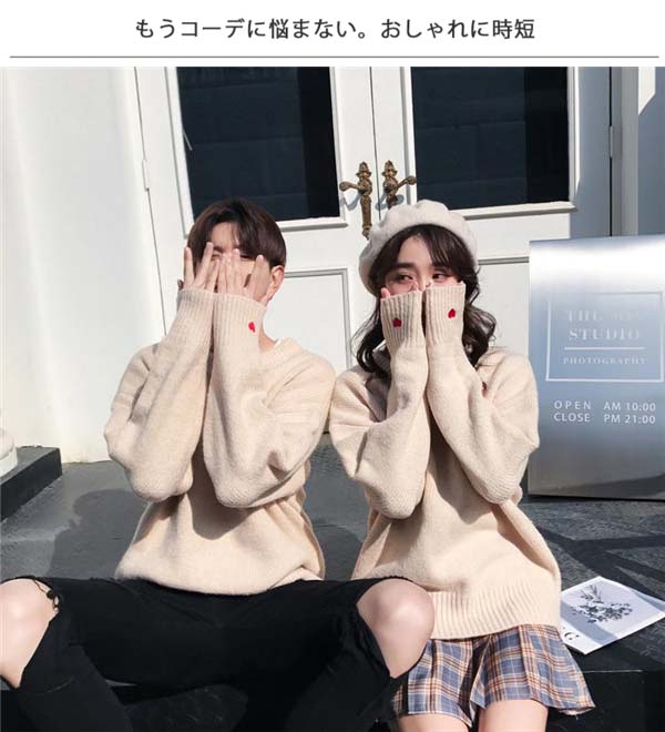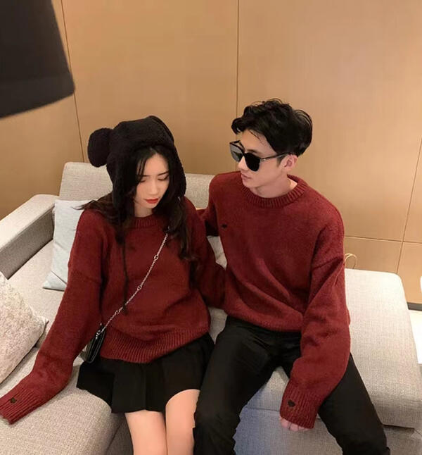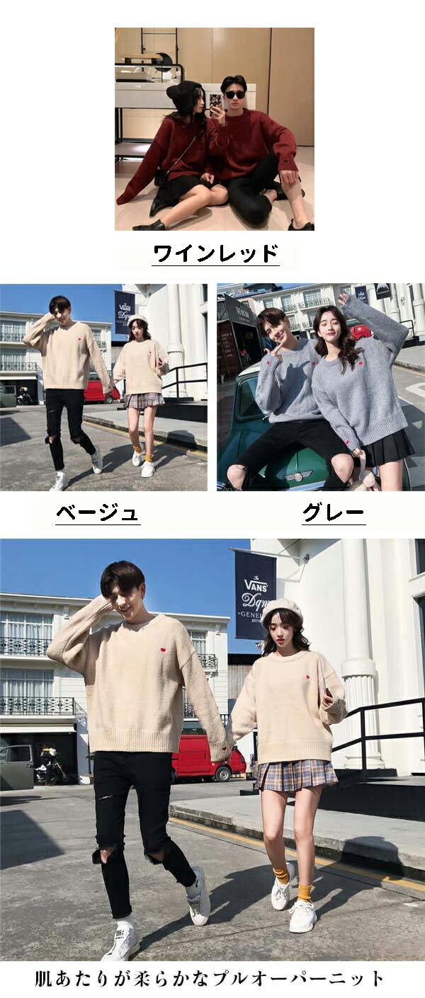 長袖ニットセーター ペアルック カップ レディースファッション 早い者勝ち グレー ベージュ ワインレッド S M L XL XXL