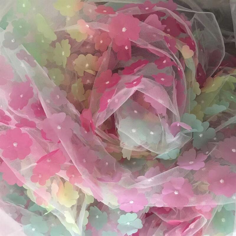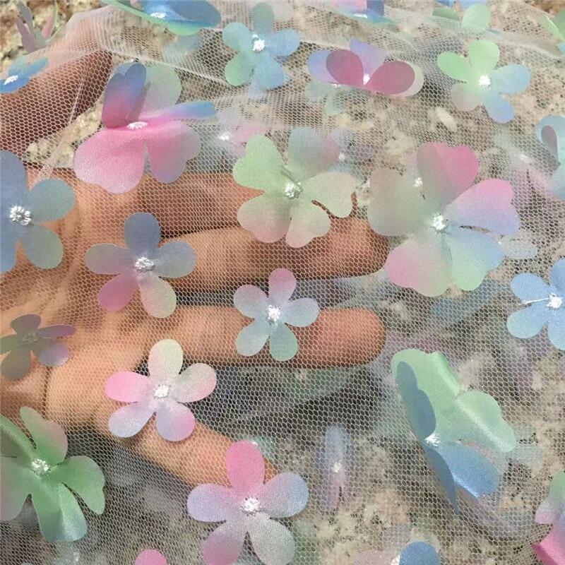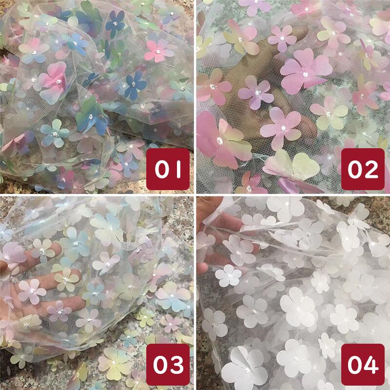 花柄 メッシュ 生地 130cm*90cm 服 ドレス 飾り グラデーション チュール 立体的 髪飾り DIY ドール 人形 裁縫 手芸素材 手作り 布地 可愛い 手芸 ハンドメイド用品 装飾 縫製