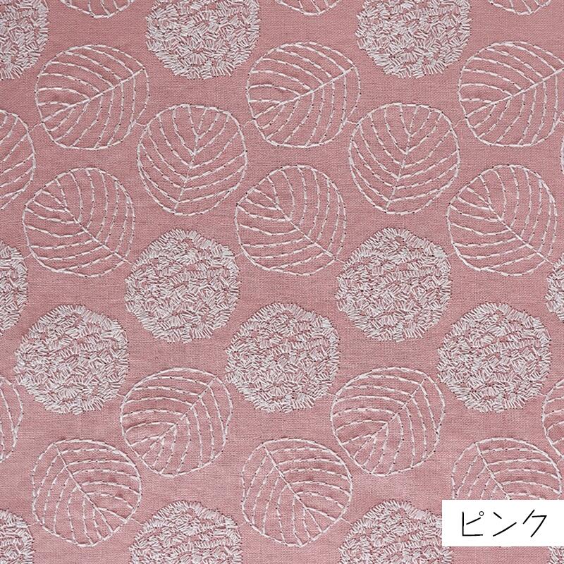 リーフ 刺繍 ラミー綿 生地 120* 手芸 クラフト 生地 生地 布 通販 ピンク イエロー グリーン ホワイト