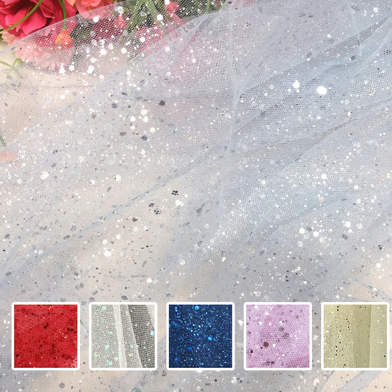 チュール 生地 グリッター 1.5Mx 日用品雑貨 文房具 手芸 人気 ホワイトシルバー ネイビー ピンク ホワイト「幻彩」 ライトゴールド レッド ライトブルー