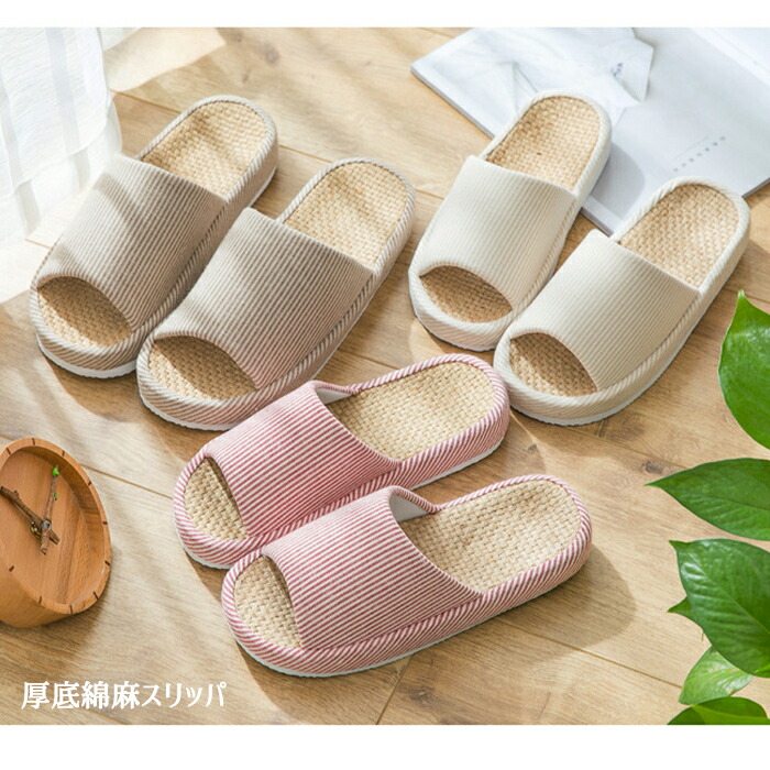 綿麻 厚底 リネン スリッパ レディー 生活雑貨 スリッパ ルームシューズ ルームシューズ 新登場!