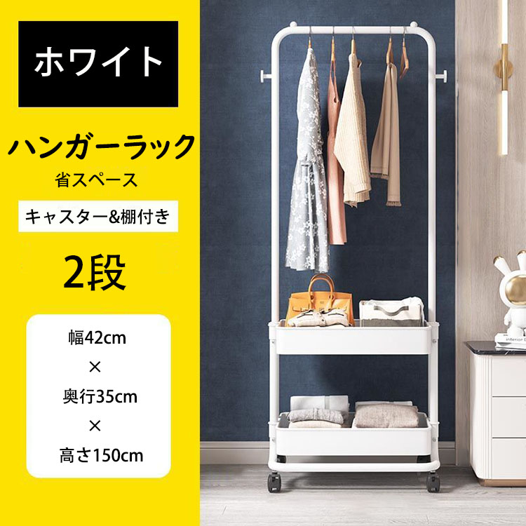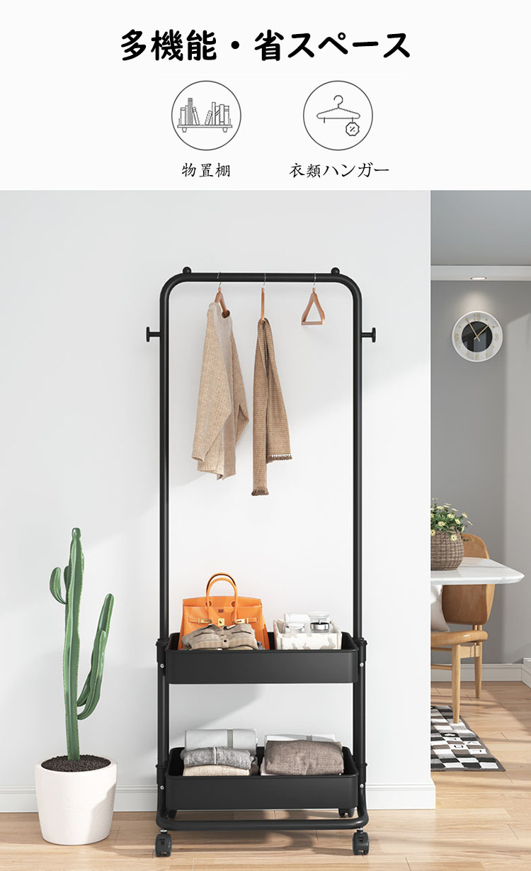ハンガーラックおしゃれ スリム バスケット付き コートハンガー キャスター付き 移動式 2段 棚付き パイプハンガーラック 組立簡単 物置き 鞄置き たっぷり収納 玄関収納 衣類掛け 洋服 衣類収納