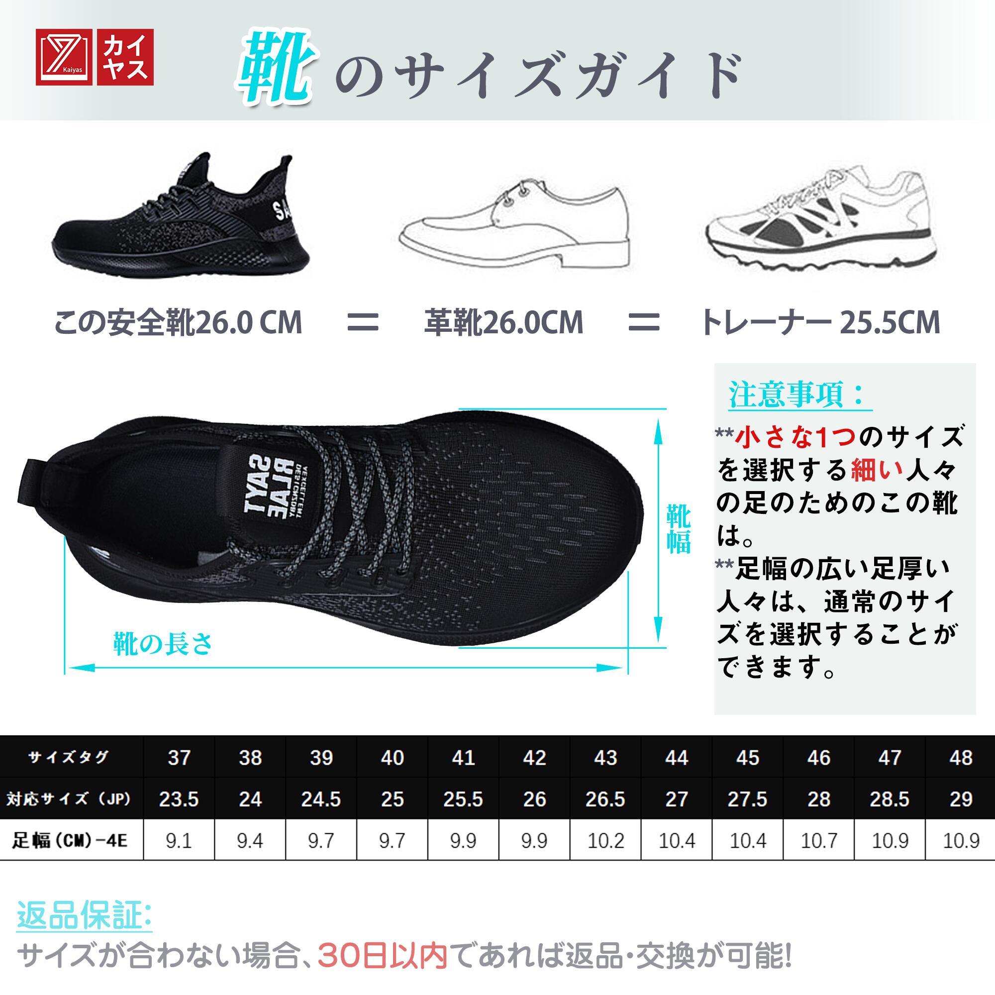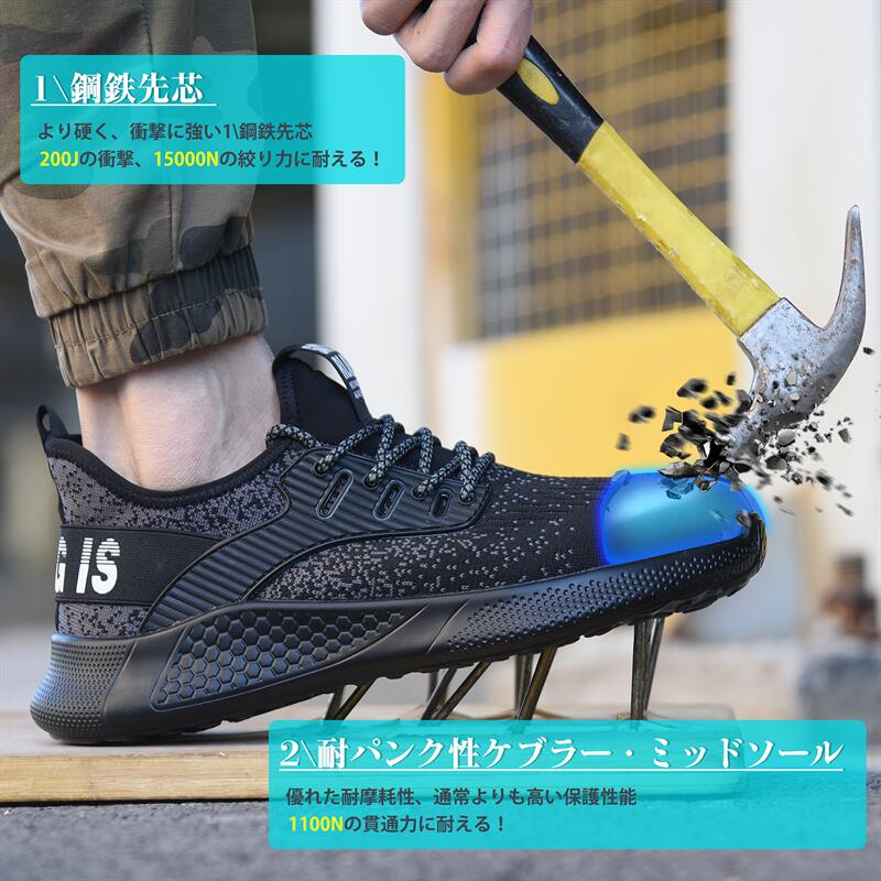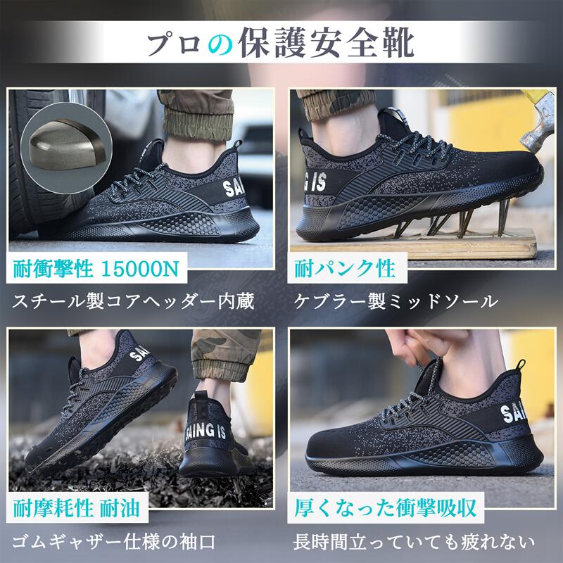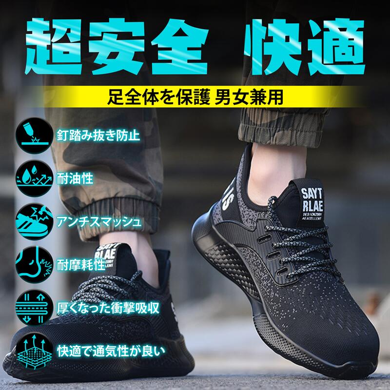 安全靴 作業靴 メンズ 男女兼用 釘踏み抜き防止 衝撃吸収 耐滑ソール つま先保護 軽量 通気性 工事現場 cm 4E ブラック 28.5