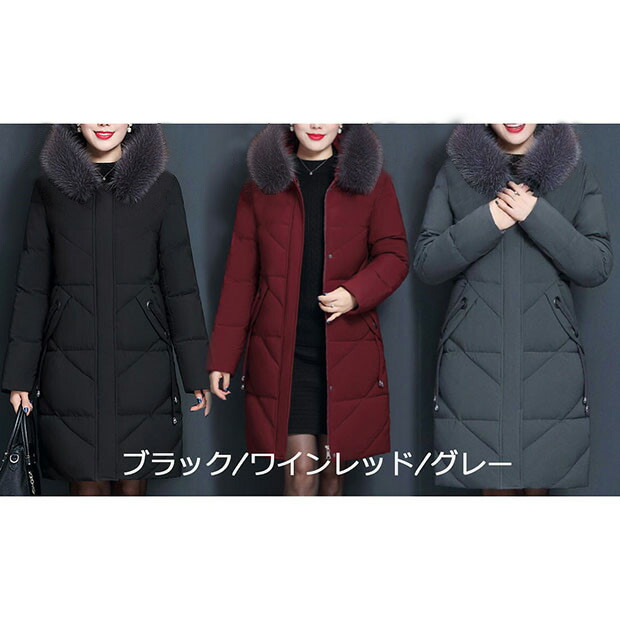 ファー付き ファー外せる 着痩せ 軽量 レディースファッション 早い者勝ち グレー ブラック ワインレッド フェイクファー フォックス+5990円