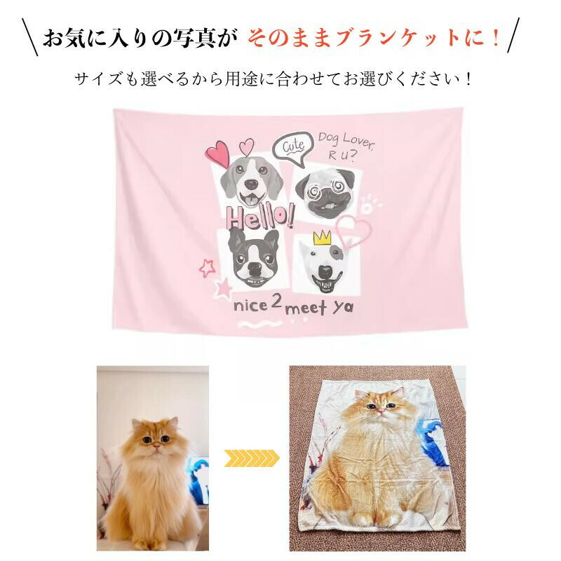 お気に入りの写真(ペット・家族・推しなど)を送るだけで、あなただけの特別な一枚を作成します!オリジナル ブランケット 膝掛け 毛布 プレゼント