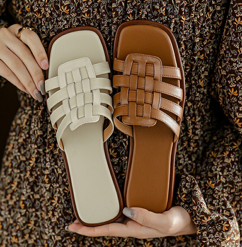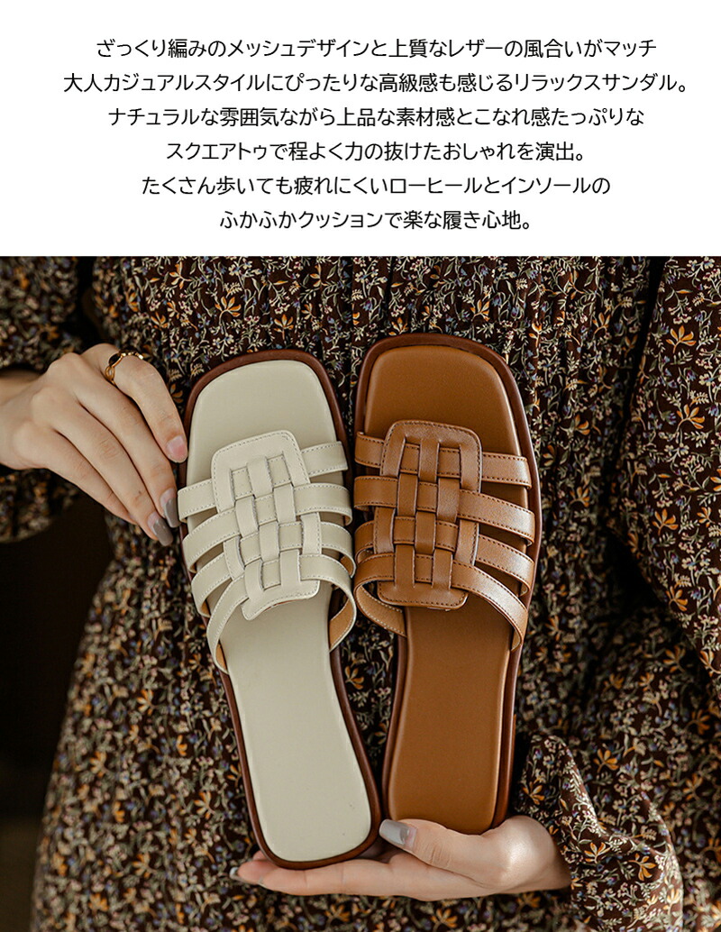 サンダル ミュール レディース ぺたんこ 歩きやすい つっかけ ローヒール スクエアトゥ 履きやすい 痛くない 夏 シンプル おしゃれ メッシュサンダル コーヒー ベー かわいい