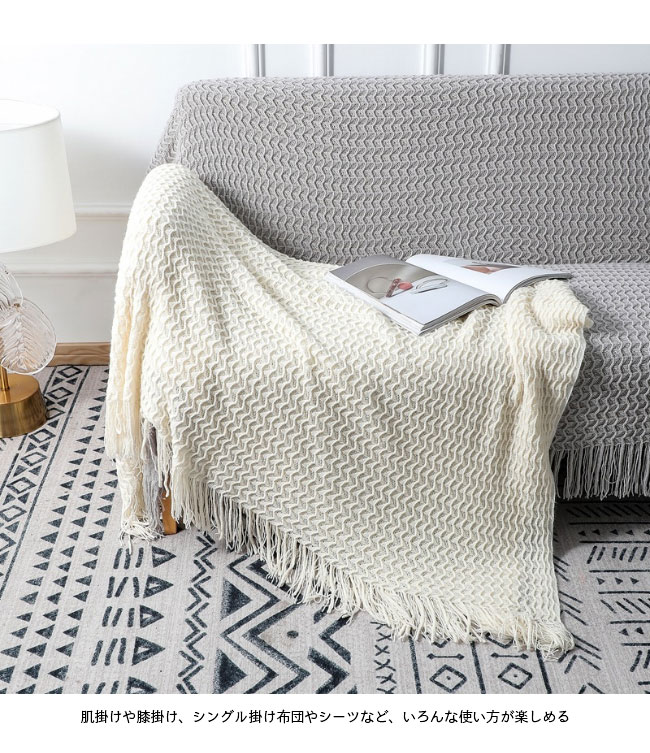 ブランケット シングル 毛布 北欧風 大判 ニットブランケット ふわふわ タッセル付き おしゃれ グレー 冷房対策 肌掛け 膝掛け グリーン フリンジ付き 冷え対策 もうふ もこもこ ベージュ お昼寝