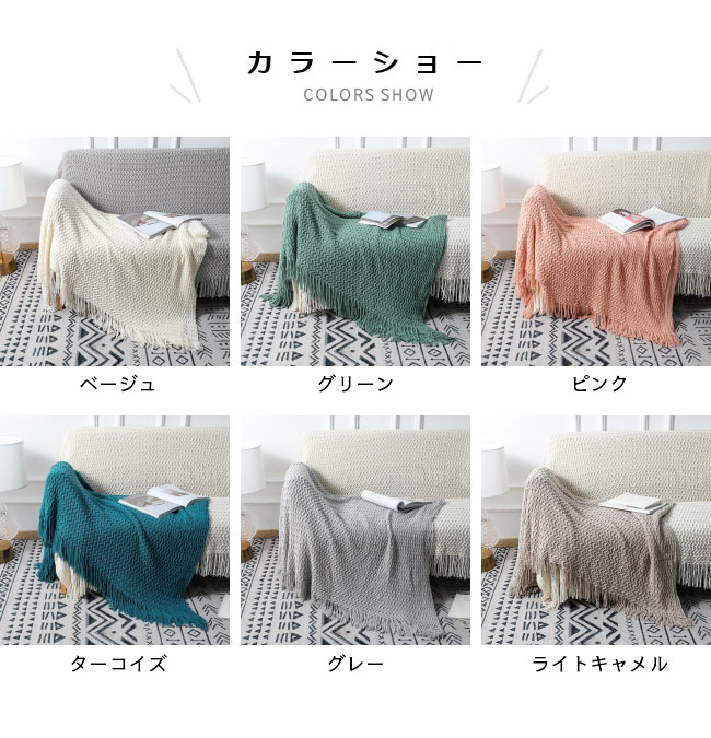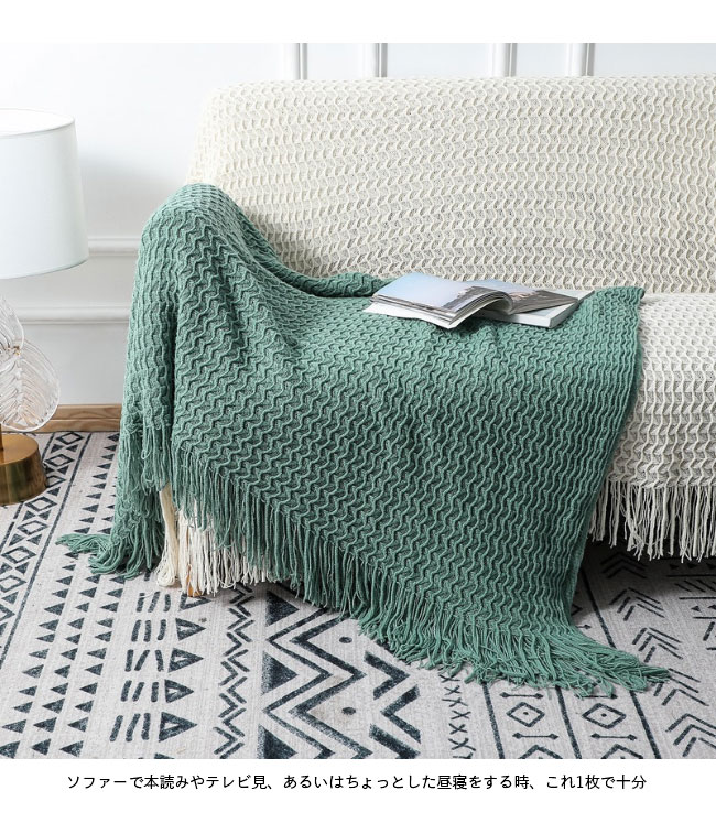 ブランケット シングル 毛布 北欧風 大判 ニットブランケット ふわふわ タッセル付き おしゃれ グレー 冷房対策 肌掛け 膝掛け グリーン フリンジ付き 冷え対策 お昼寝 もうふ もこもこ ベージュ ターコイズ