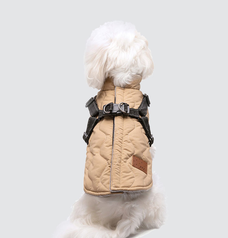 ハーネスと上手に結ばれた綿入れ、一体型のデザインがより美しく、快適で便利。
