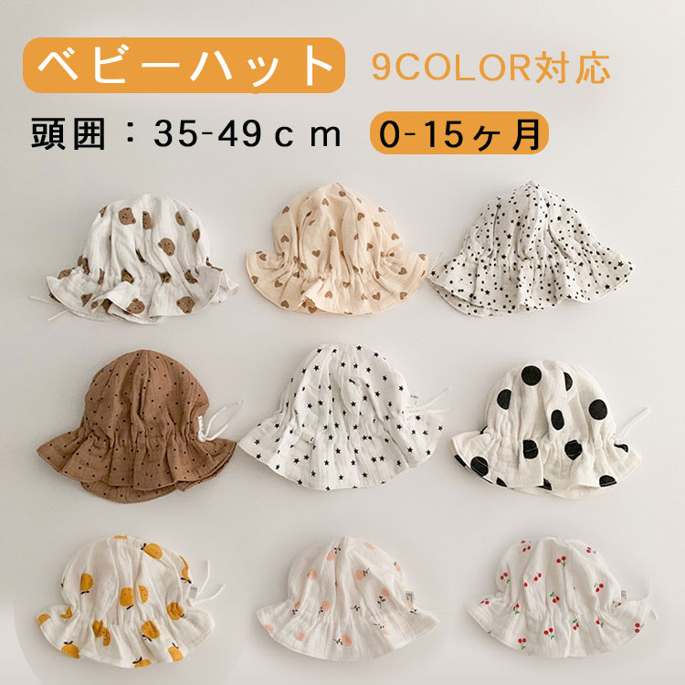 ベビー帽子 UVカット 通年 綿 秋 キッズ ベビー マタニティ 新登場! A#水玉Xベージュ B#星柄 C#心柄 D#熊柄 F#ブラウンX水玉 G#チェリー柄 H#オレンジ柄 I#花柄