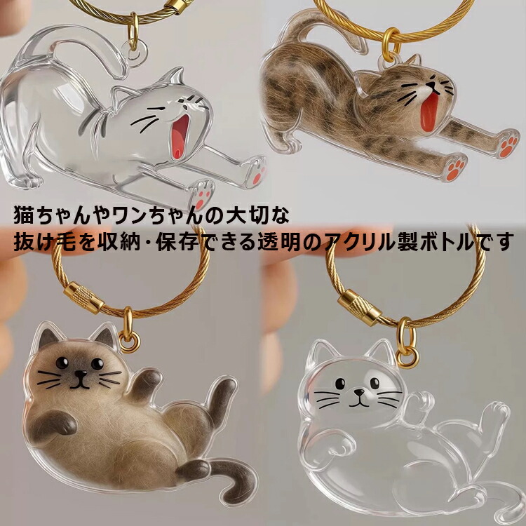2 4個セット 猫の毛収納ボトル キーホルダー 猫毛玉入れ 猫毛 透明カプセル ペット 遺毛入れ 猫毛収納ボックス 遺毛 透明 ネコ 毛を保管するボトル ケース