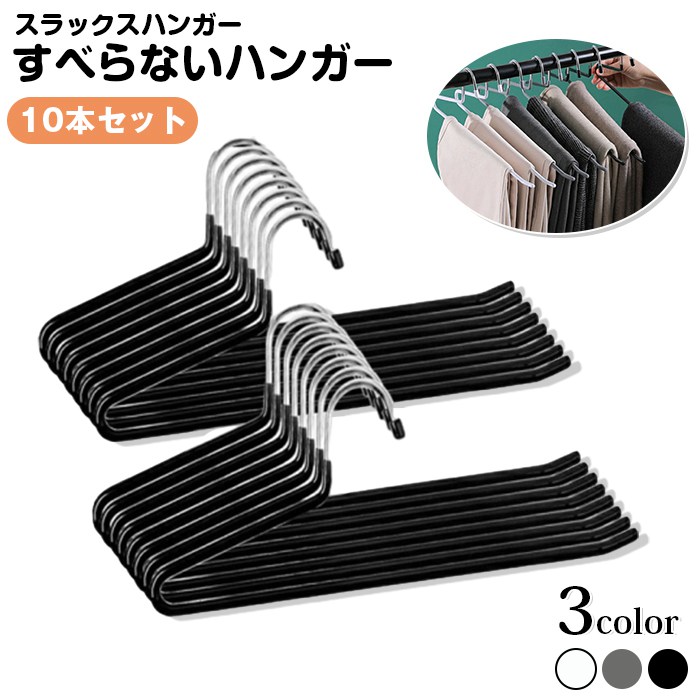 スラックスハンガー 10本セット すべ ホワイト ブラック グレー