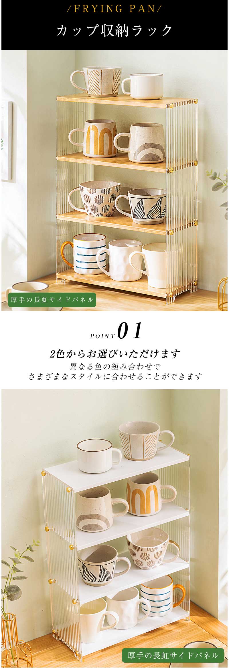 キッチン収納 食器棚 卓上 コップ収納 カーキ ホワイト ブラック 一段 二段 三段 四段