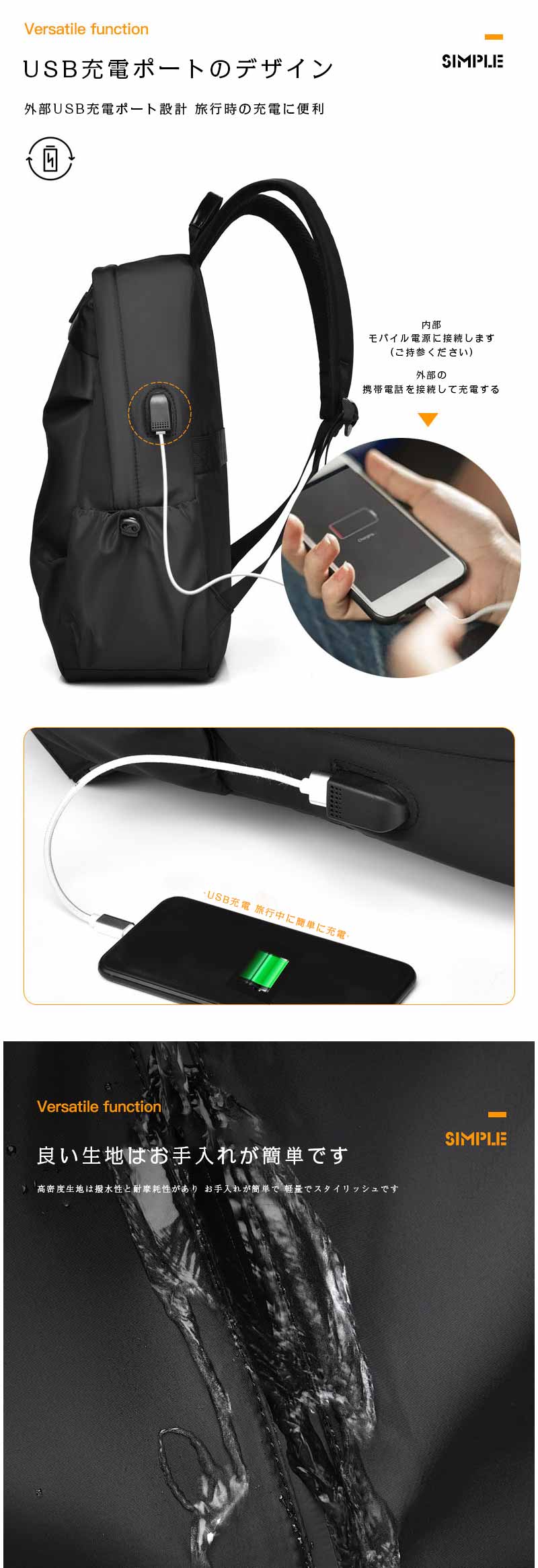 ビジネスリュック メンズリュック 大容量 usb充電ポート おしゃれ 通勤 通学 出張 機内持ち込み