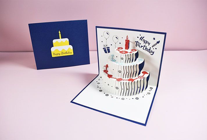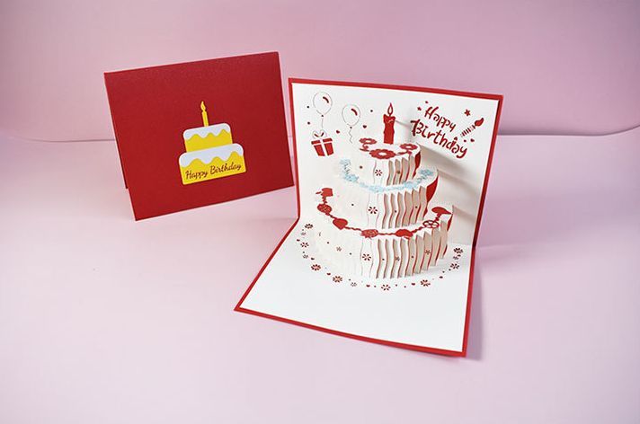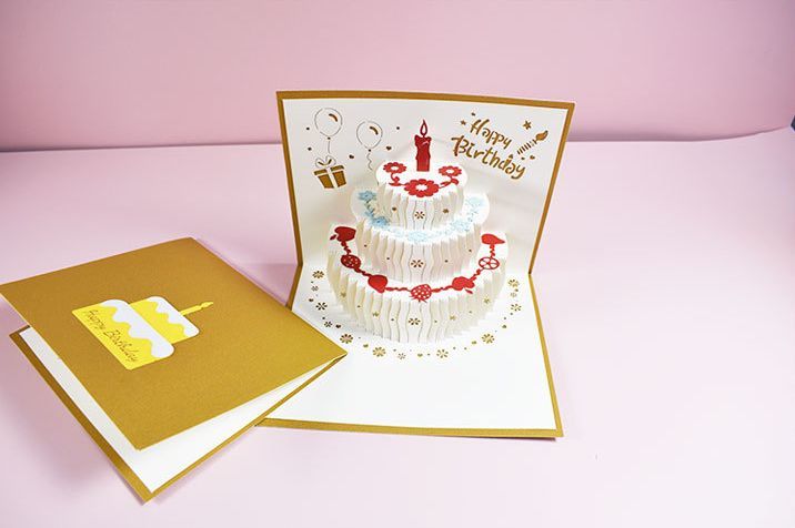 カードを開くと立体的なケーキが飛び出す、キュートなバースデーカード☆