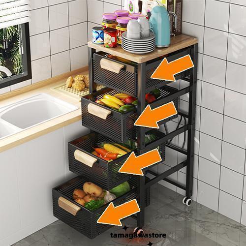 キッチンワゴン キャスター付 キッチン ブラック ホワイト 1段 2段 3段 4段 5段