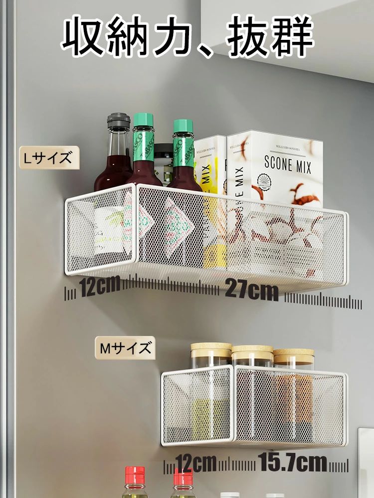マグネット収納 バスケット 隙間収納 バス用品 整理棚 ラック 新作 ホワイト ブラック Mサイズ[15.7 x 12 x 7.7cm] Lサイズ[27 x 12 x 7.7cm]